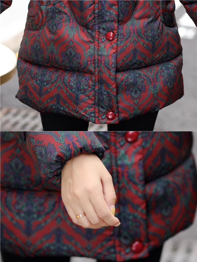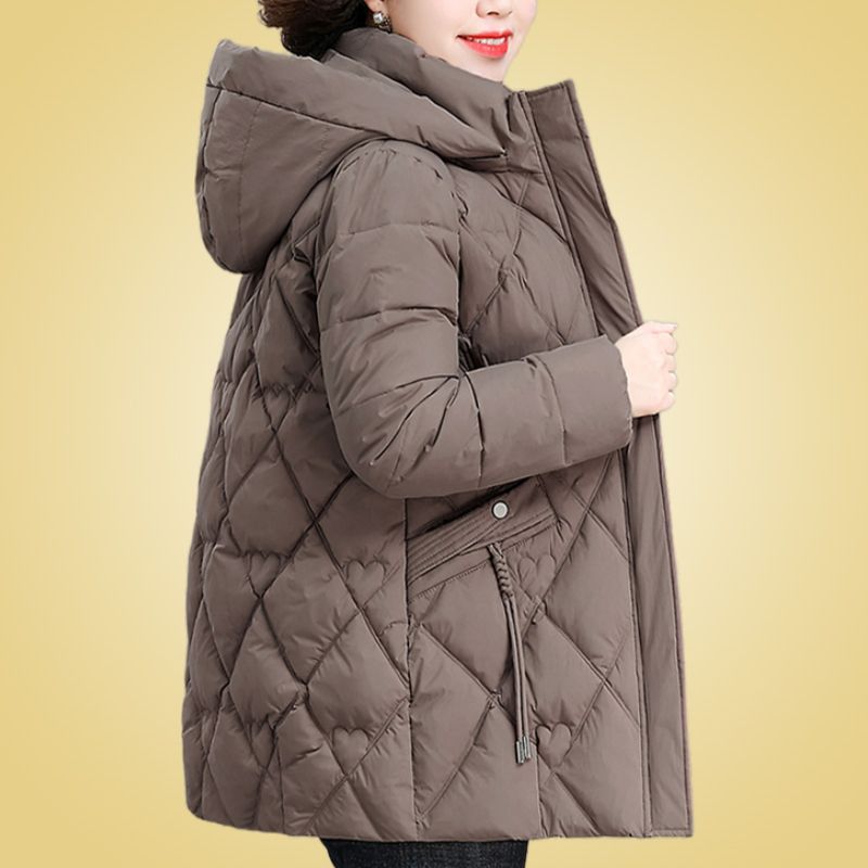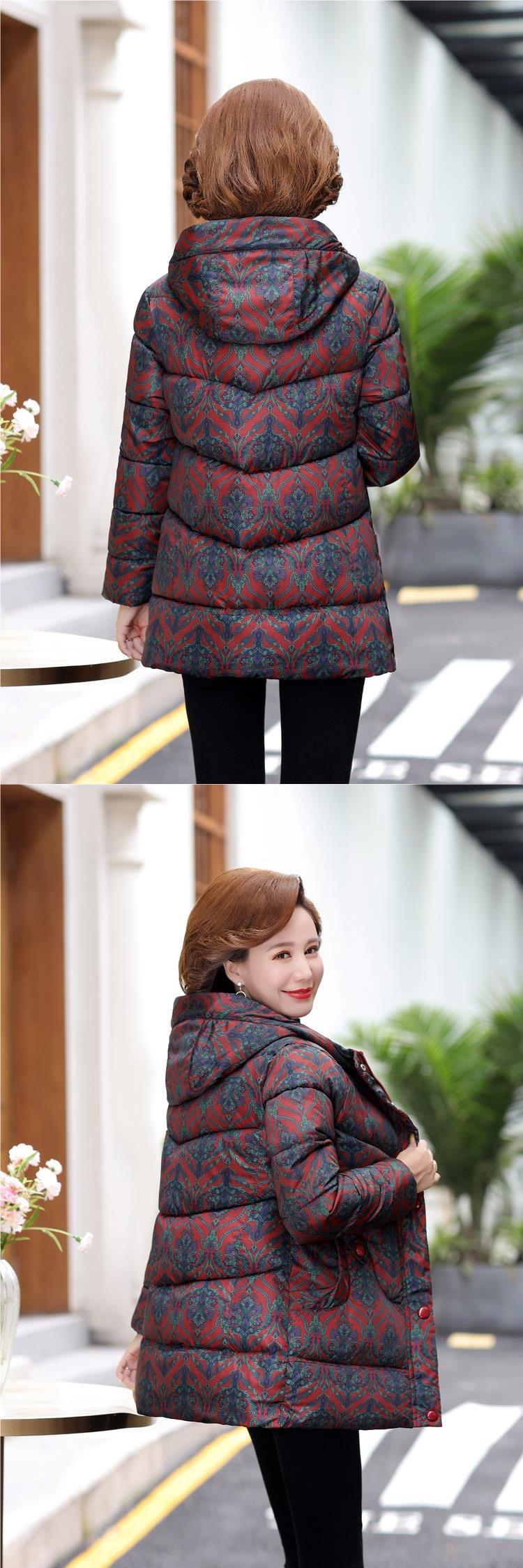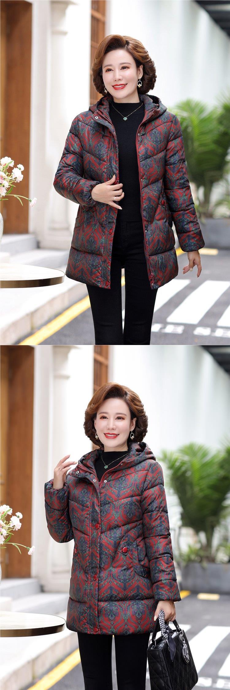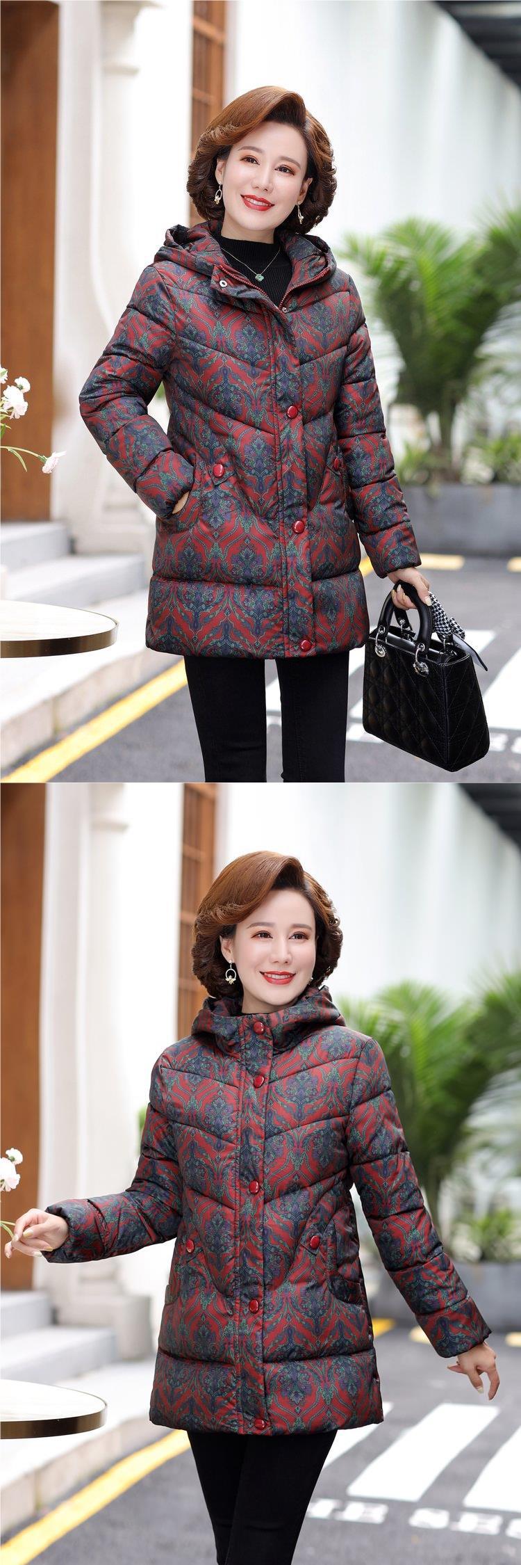 2024新型ママ冬服ダウン綿服女性の中長タイプの中高年秋冬フード付き厚手綿入れコート