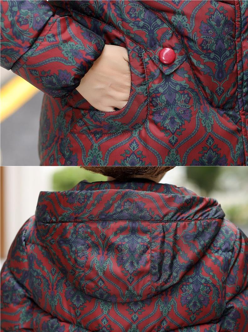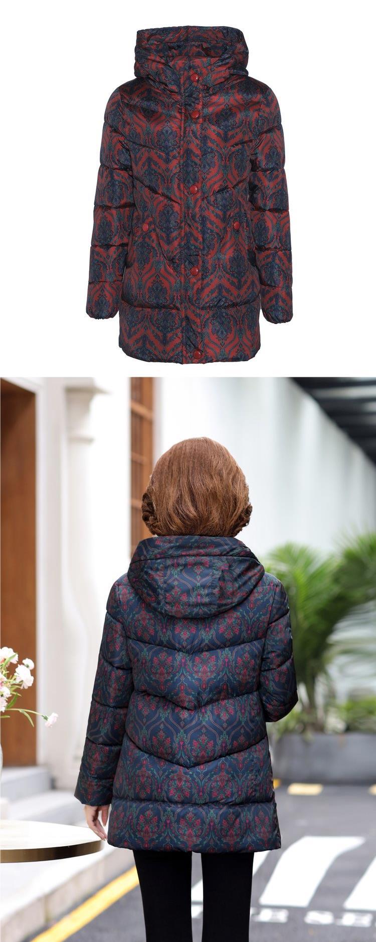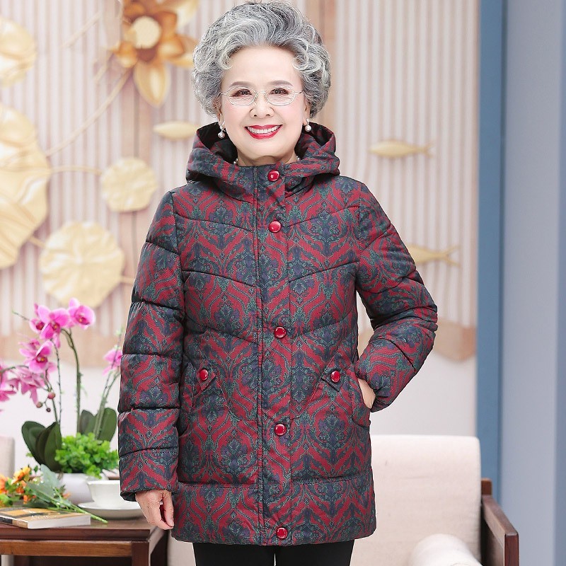 中年のお母さんの冬服の洋風のプリントの羽毛の綿服の中で老年の婦人服の冬の老人のおばあさんの綿服のコートの厚いです。