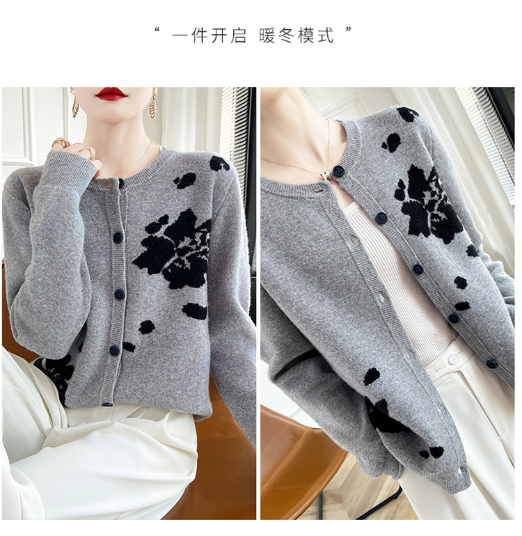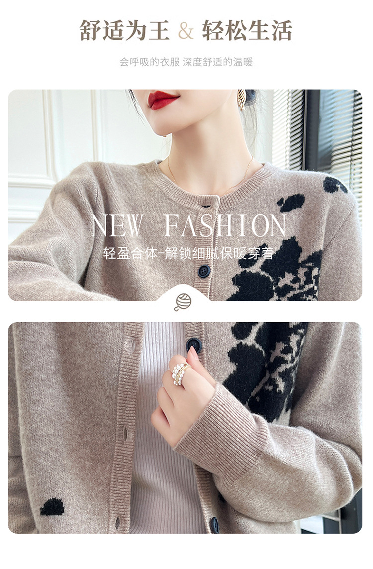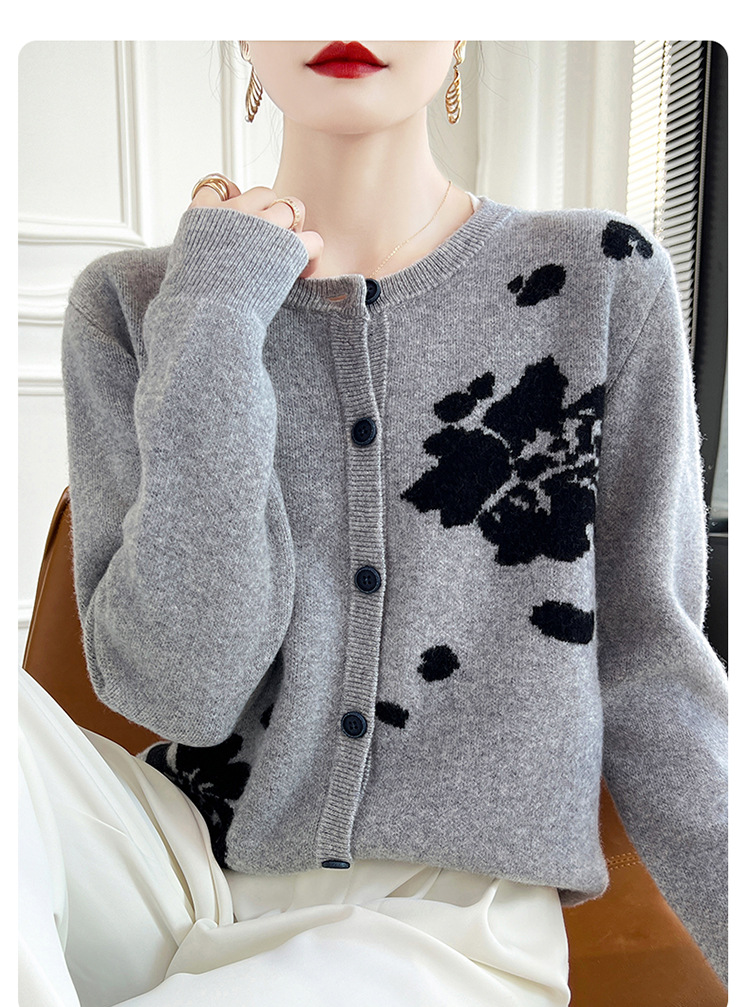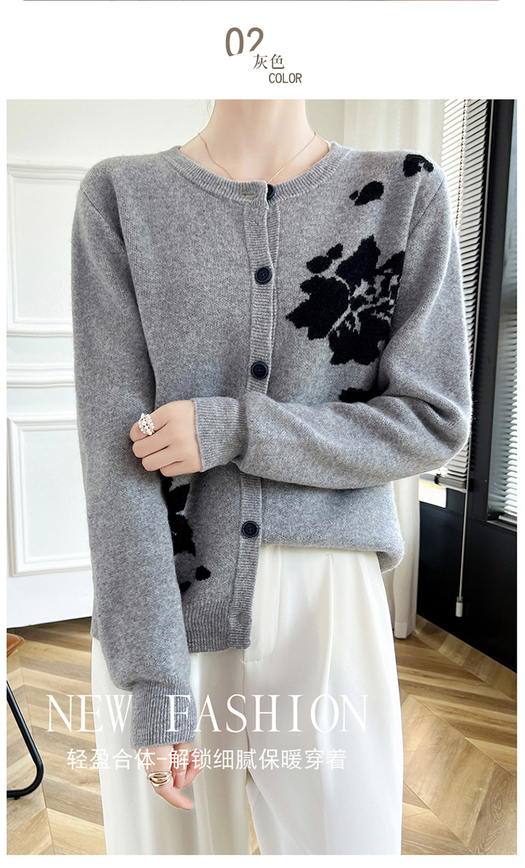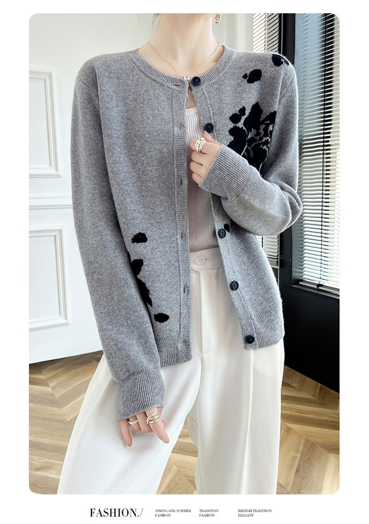 2024秋の婦人服刺繍花メリヤス軽薄コート気質減齢快適丸襟系カーディガン