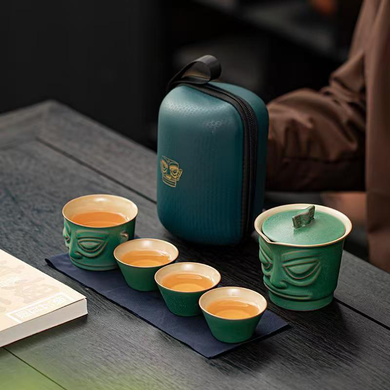 サムスンの山の旅行の茶器の携帯の陶磁器の快客の杯の1つの壺の4杯の工夫の茶器の屋外の車載の文は贈り物を作ります。