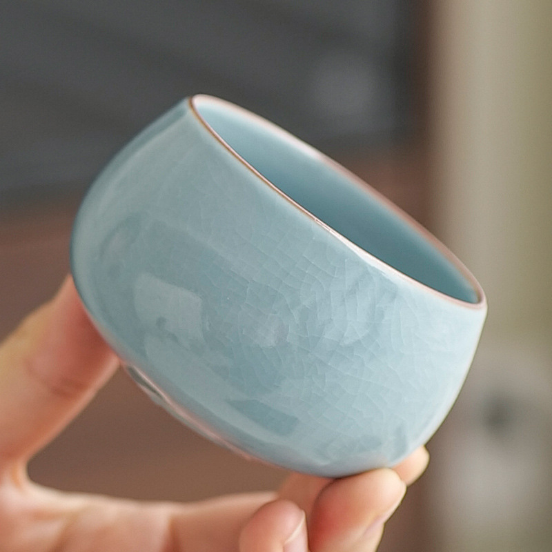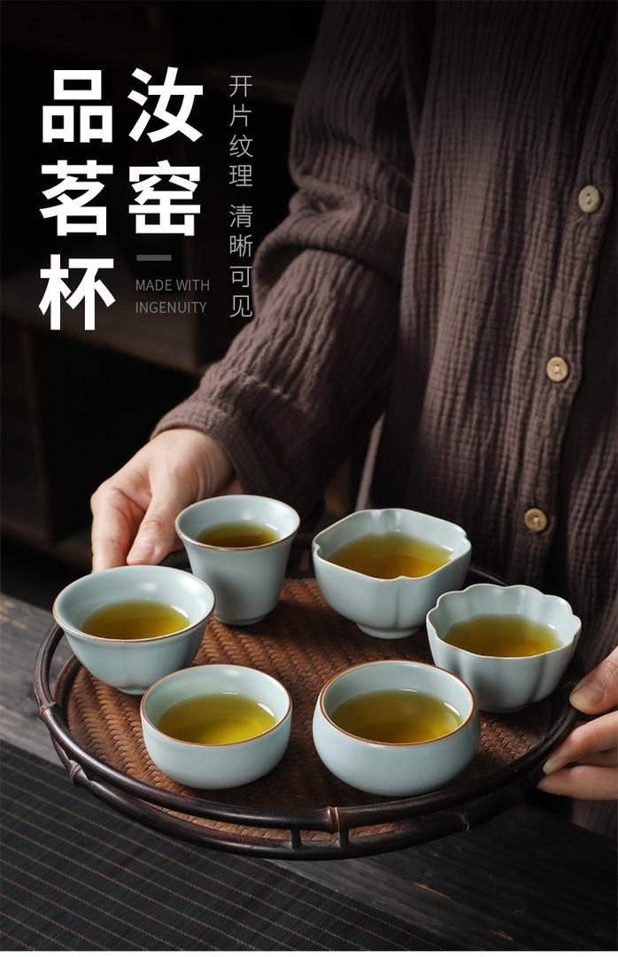 天青汝窯茶杯主人杯個人単杯開片氷花釉陶磁器品茗杯カンフー茶杯杯杯杯