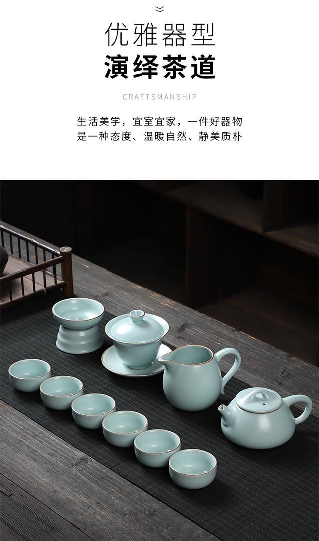 陳培明汝窯蓋碗茶杯天青家庭用三才泡茶碗セット単一手作り陶磁器工夫茶器
