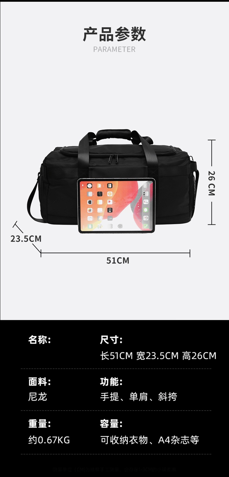 クロスボーダーオックスフォード布防水短距離旅行バッグシンプルで多用途のヨガトレーニングスポーツフィットネス荷物バッグ搭乗バッグ