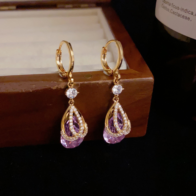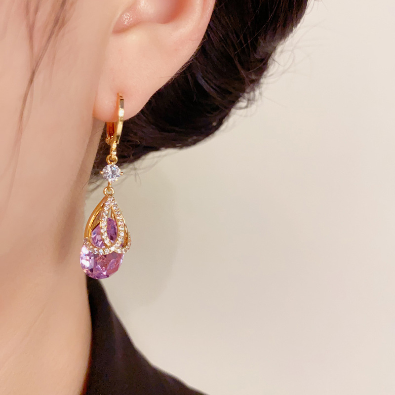大衆ファッションデザイン感ジルコン紫色水滴ロングタイプの耳ボタン女性の気質が軽くて豪華で洗練されている