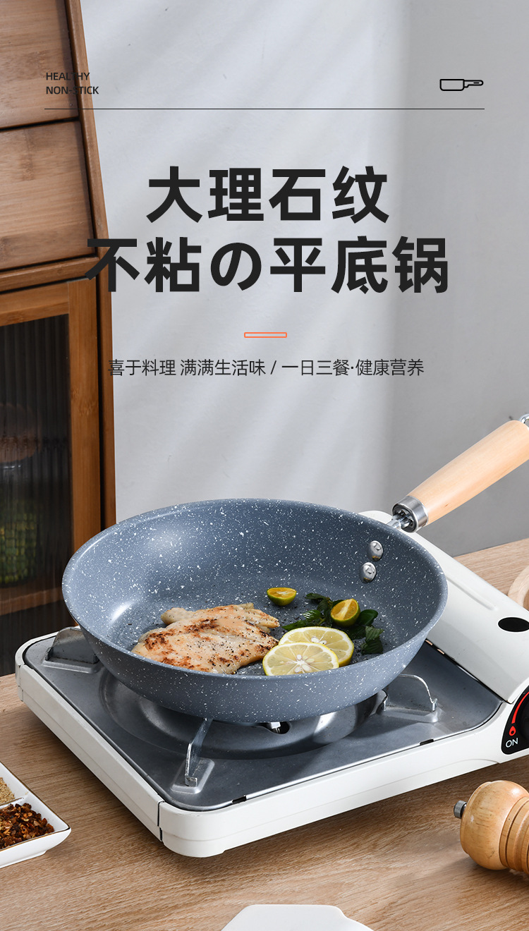 新款石纹不粘炒锅家用小炒菜锅平底煎锅不沾锅电磁炉燃气灶专用