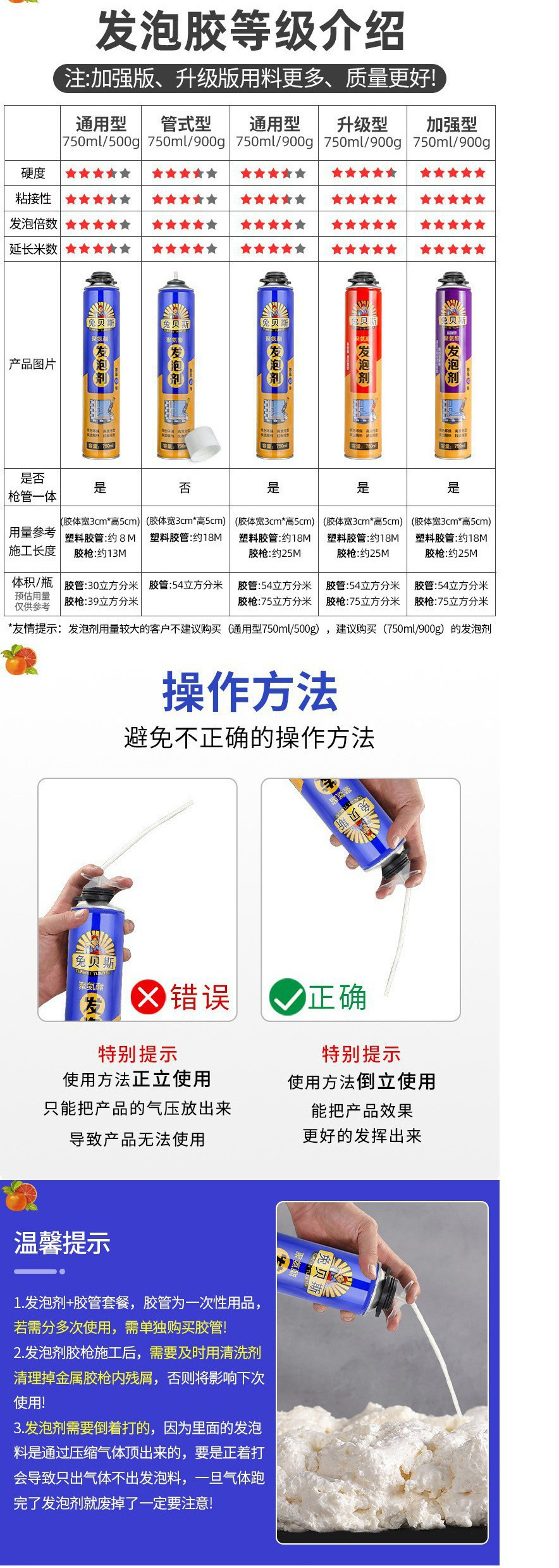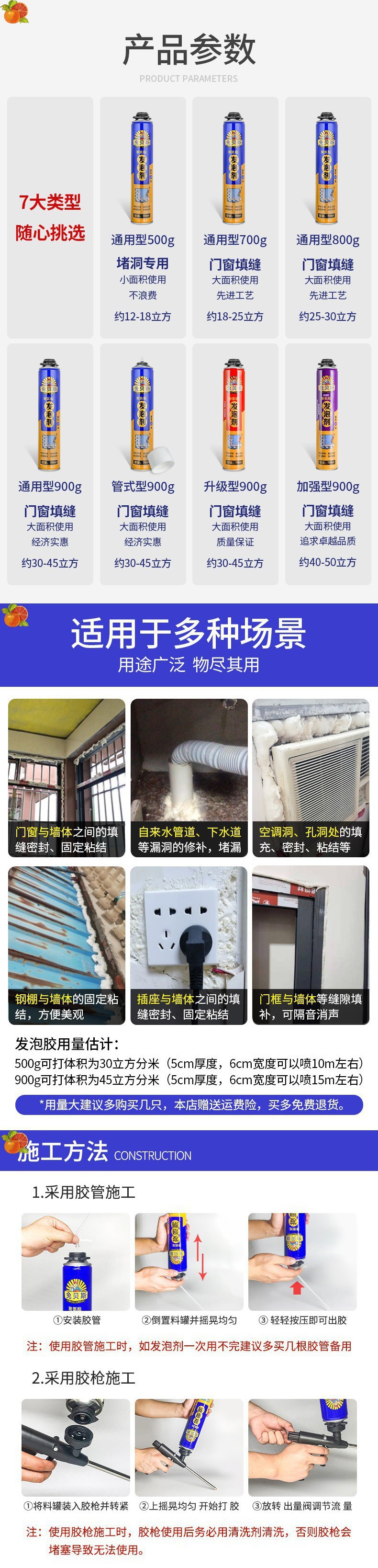 泡沫胶发泡胶填缝剂门窗密封填充膨胀补漏聚氨酯发泡剂堵洞裂缝