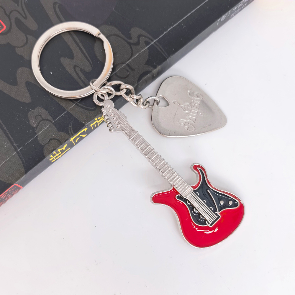 跨境热卖创意礼品贝斯钥匙扣金属吉他拨片乐器挂件小礼品包包挂饰