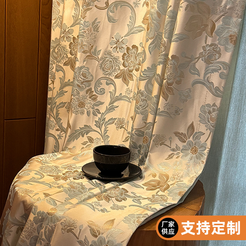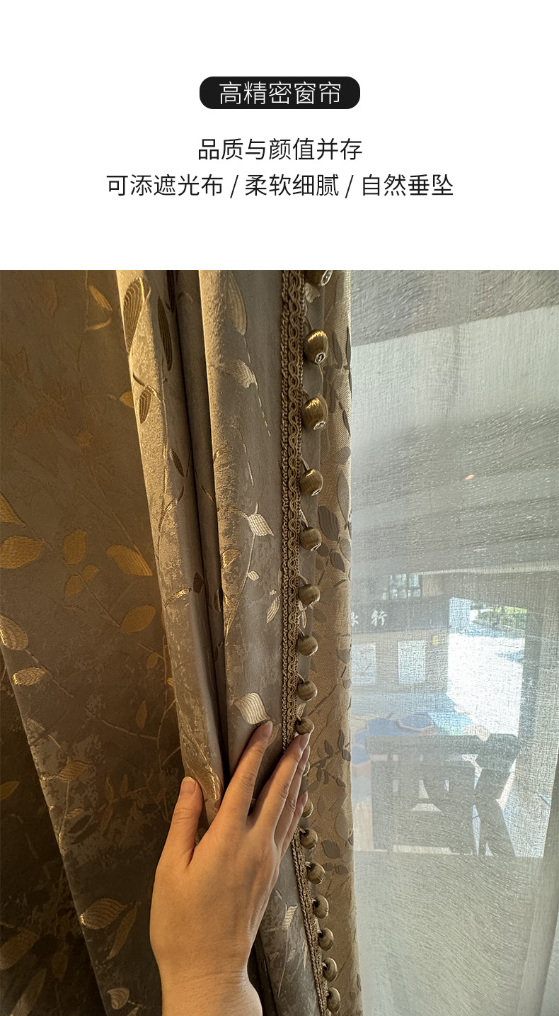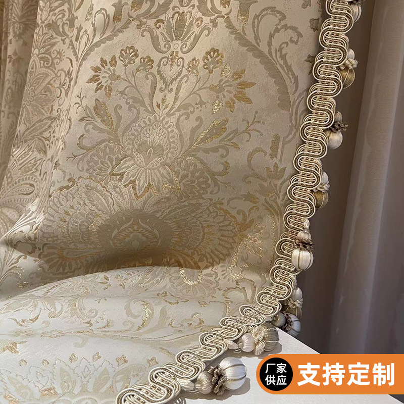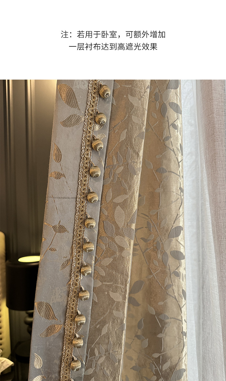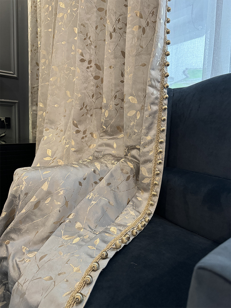 1000グラムフランス風ロマンチックなカーテン卸売り高精密ジャカード軽贅沢生地金枝玉葉灰寝室カーテン