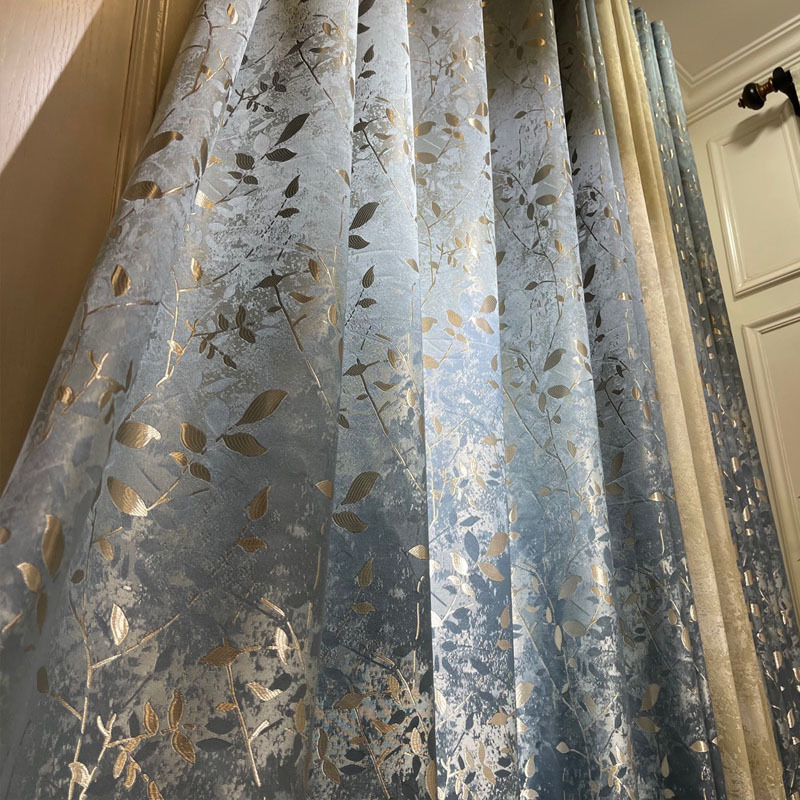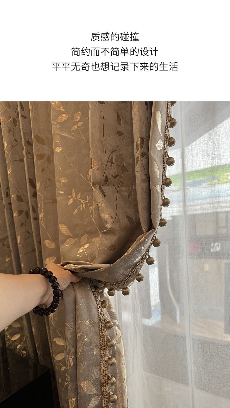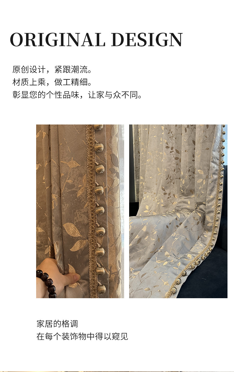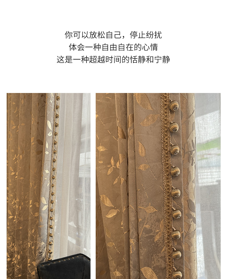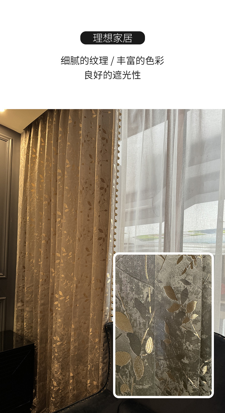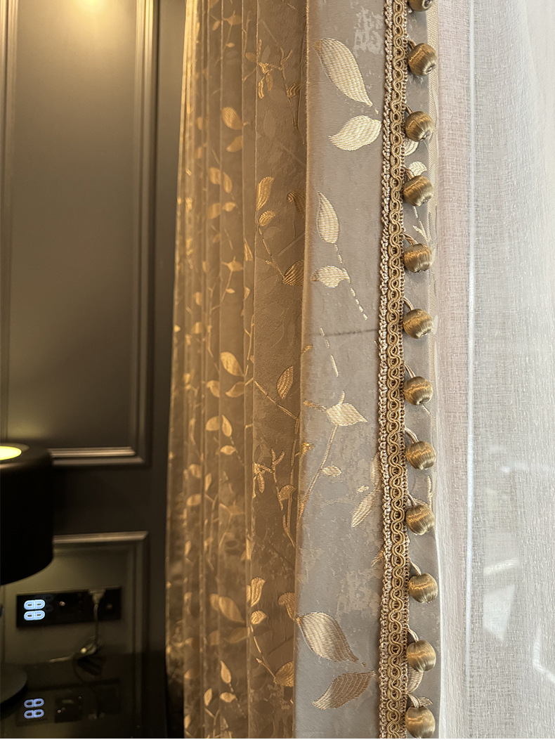 源工場浮き彫り金葉カーテン-軽豪華レトロ金糸葉カーテン _ 立体高精密垂直カーテン