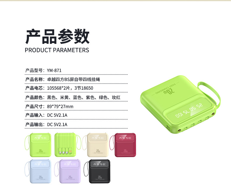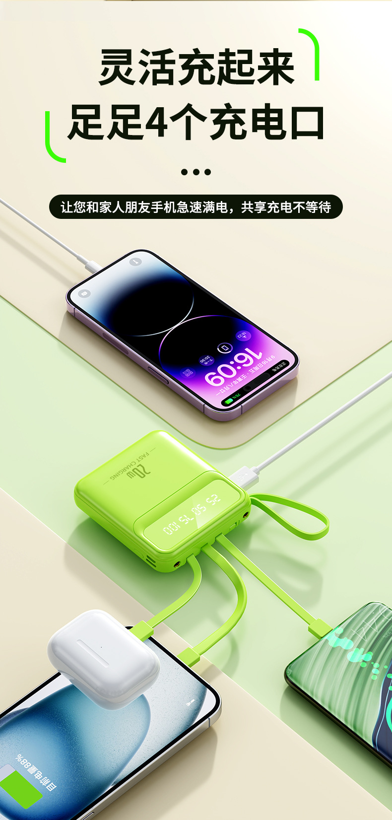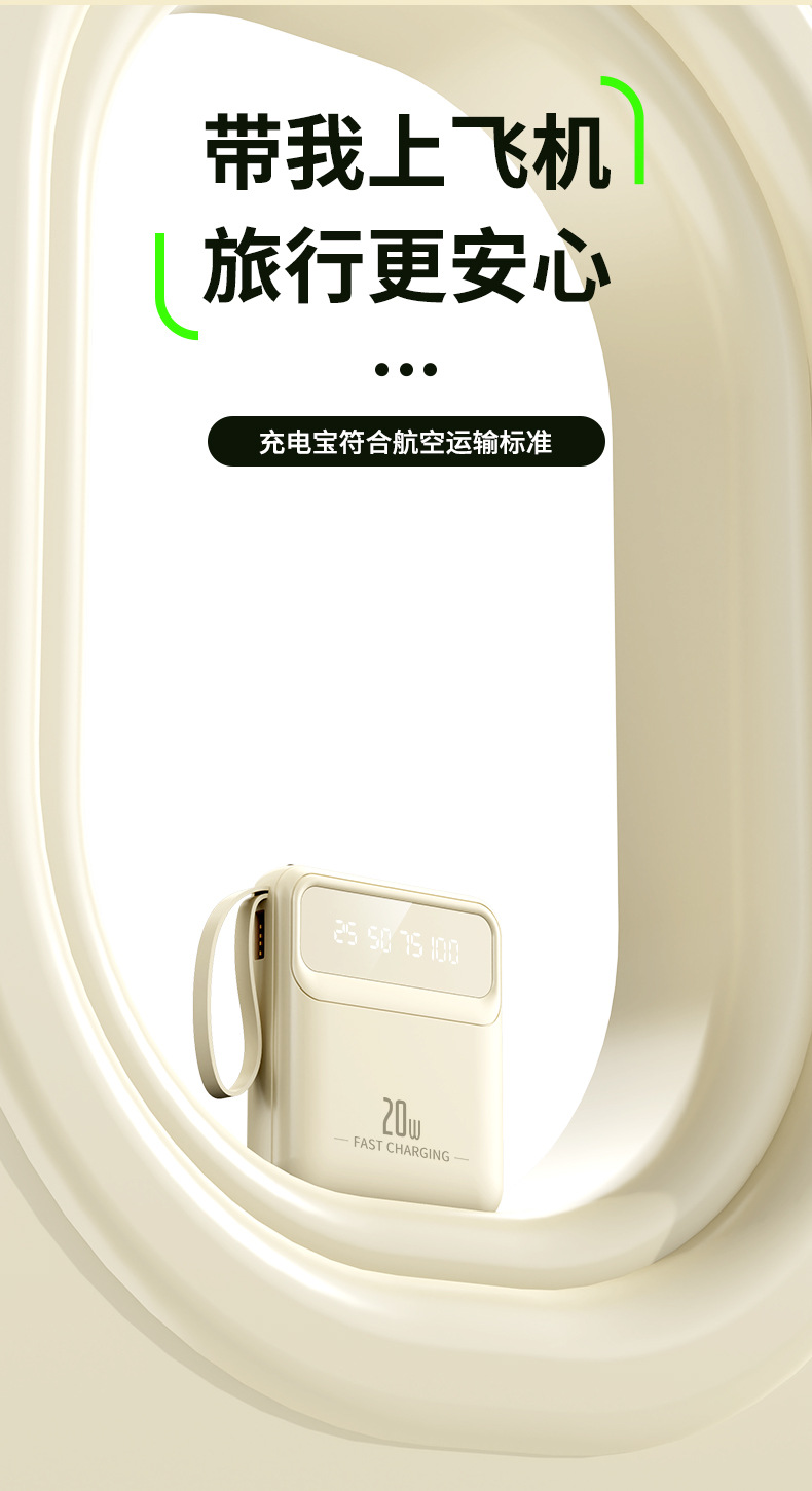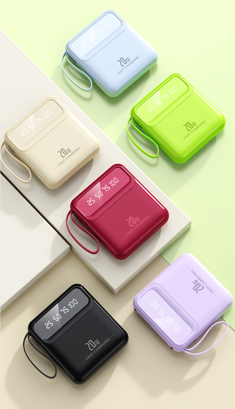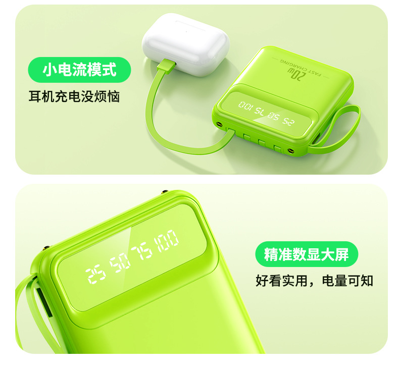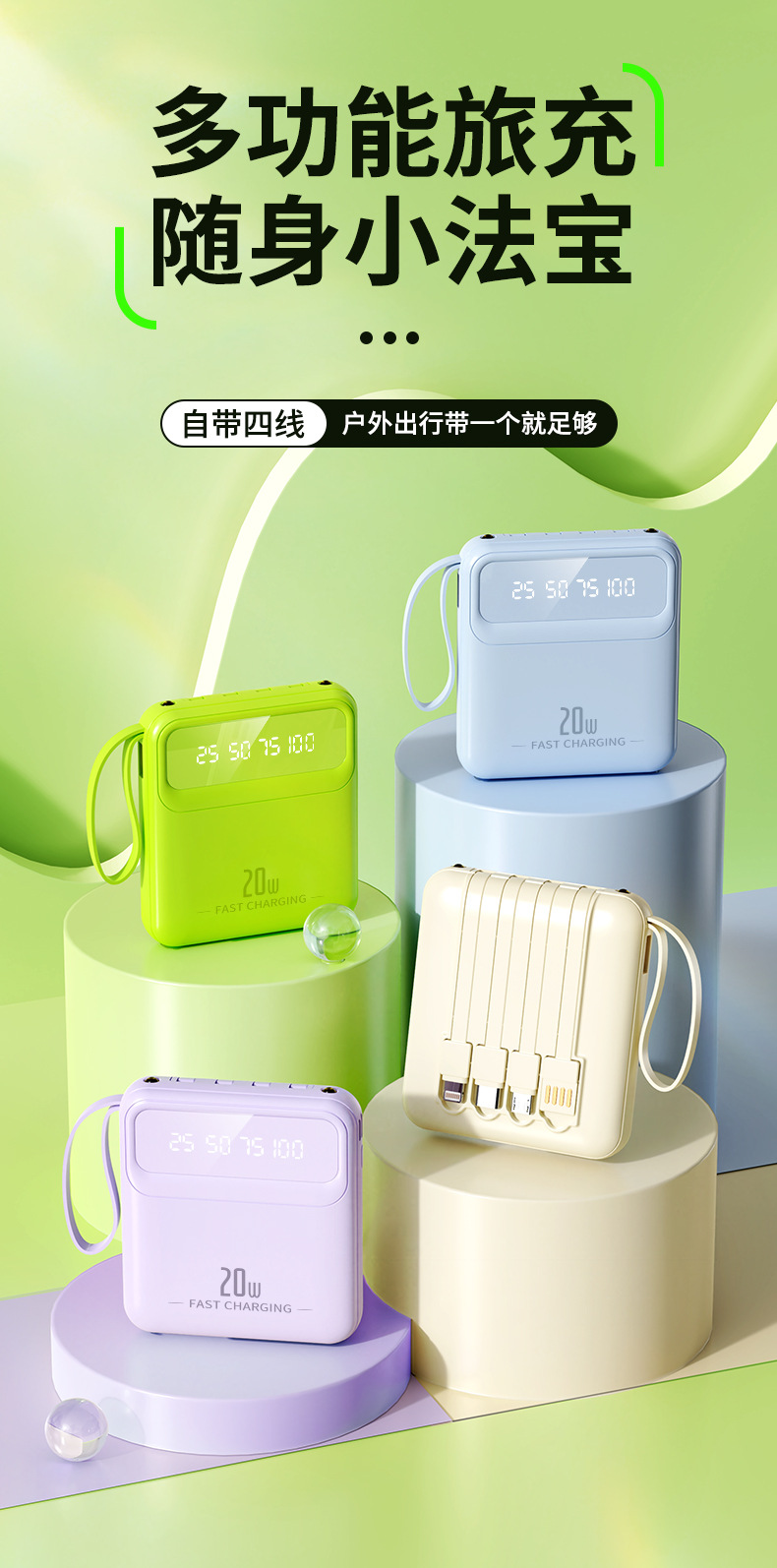 ミニコンパクト20000ミリアンペア大容量セルフケーブル充電宝かわいい携帯プレゼントモバイル電源卸売り