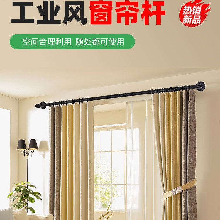 外国貿易クロスボーダー伸縮可能黒色工業風ローマンロッドカーテンロッド北欧カーテンロッドモダンシンプル