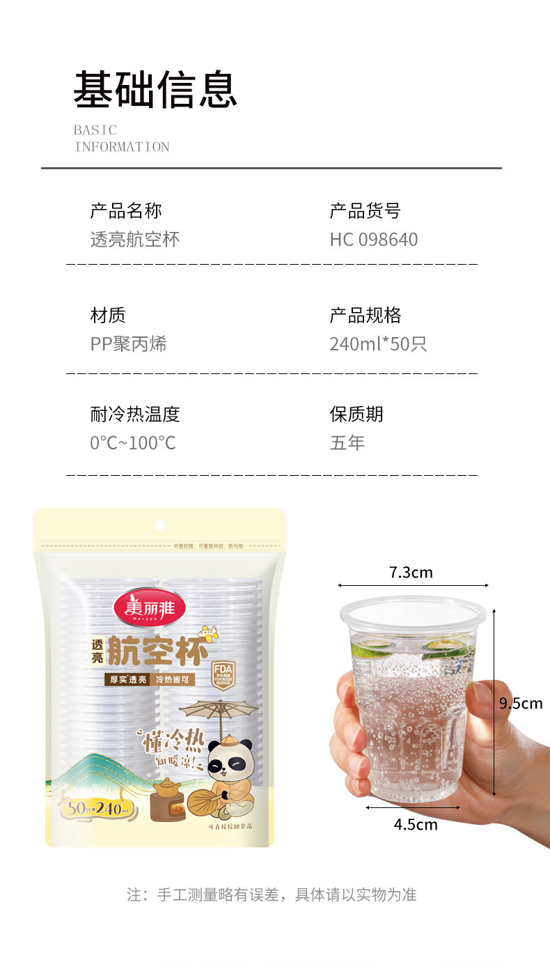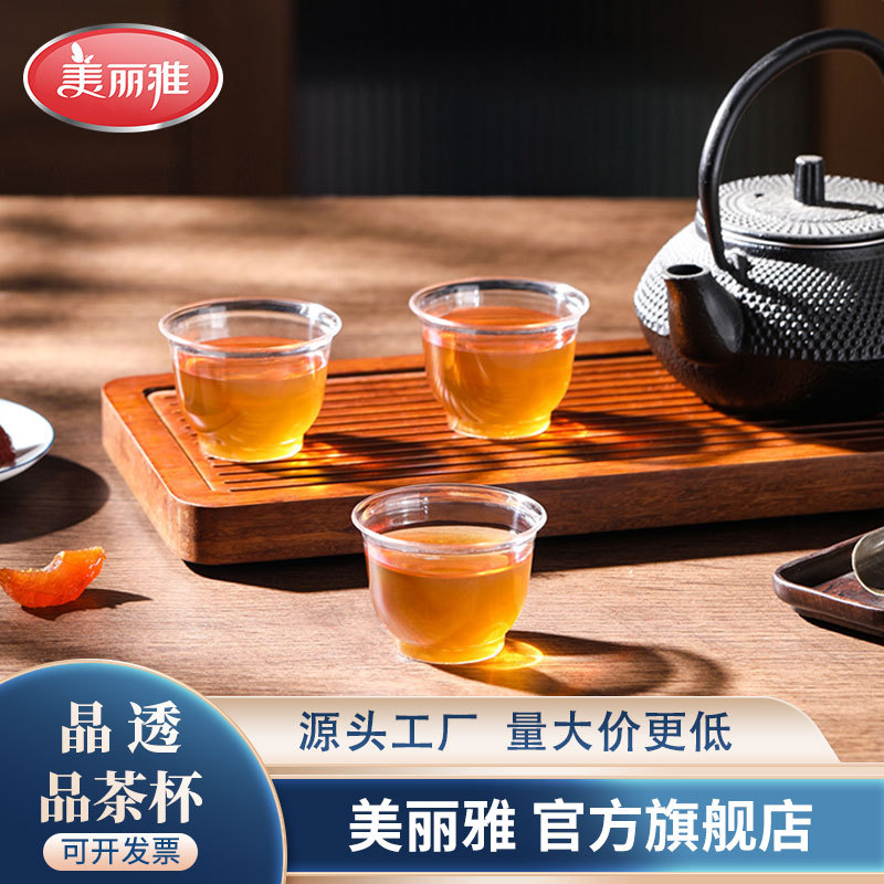 【美麗雅】カップ透明使い捨てプラスチックカップ透明カップを共有して、耐熱を厚くして変形しにくいデパート