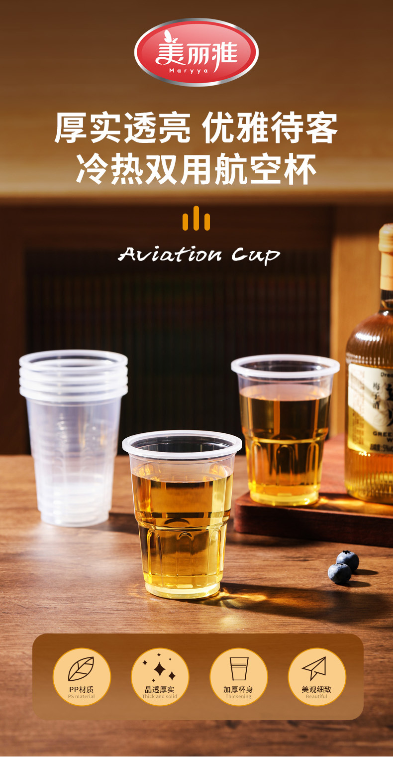 美雅PS航空カップ使い捨て厚手耐熱カップ家庭用プラスチックカップ箱詰め水カップ卸売