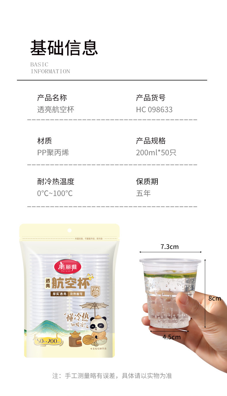 Meliya 航空カップ使い捨てプラスチックカップ透明カップテイスティングカップ肥厚抗火傷プラスチック飲料カップ
