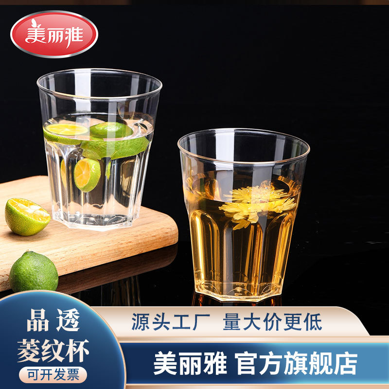美雅使い捨てクリスタル透明菱形カップ プラスチックカップ おもてなし用プラスチックカップ お試し用カップ お茶・水用透明航空カップ
