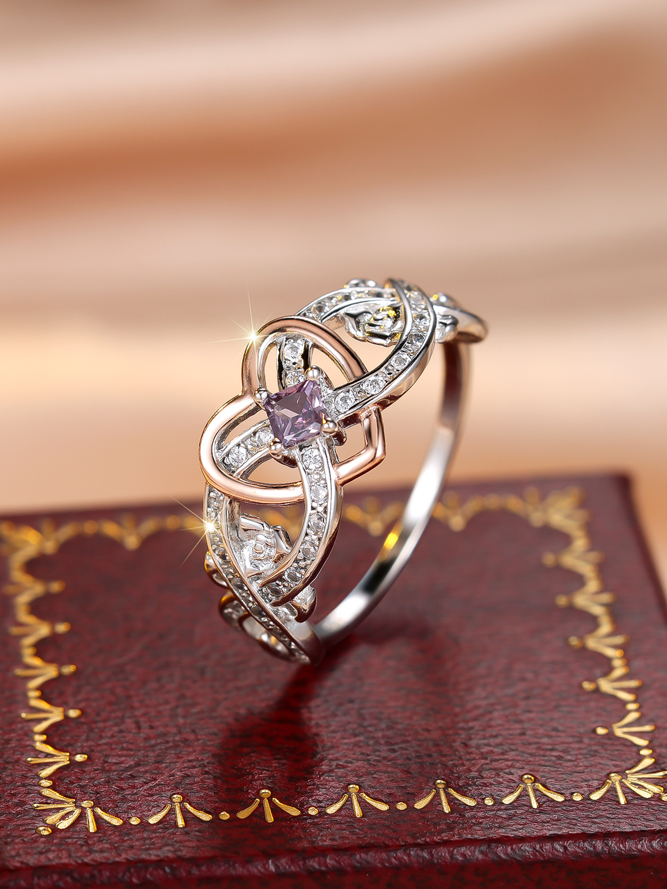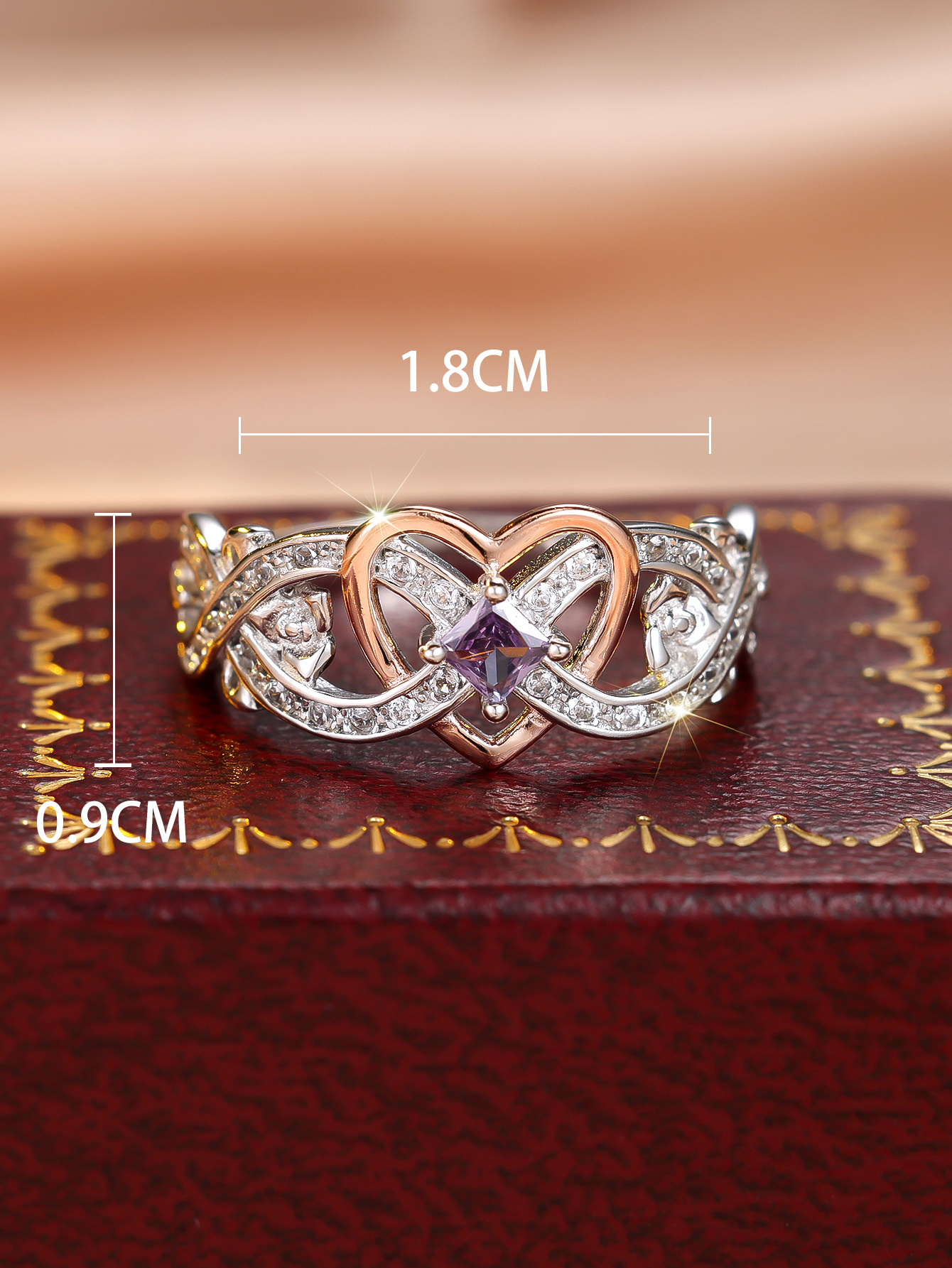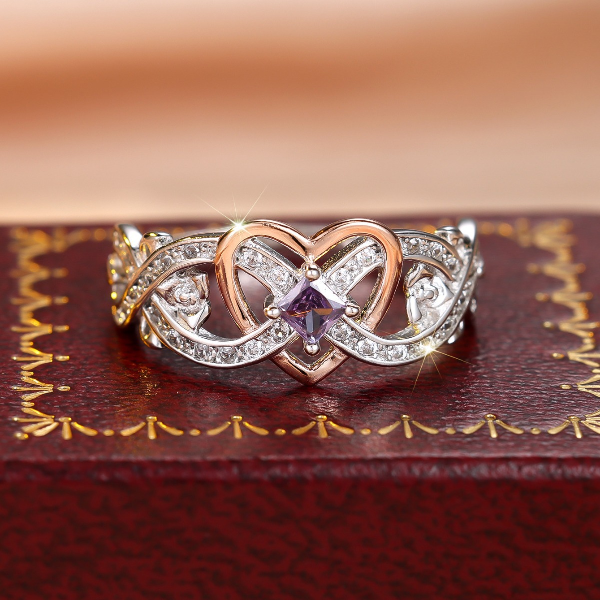 洛迪饰品跨境热卖玫瑰花公主方钻双色心形锆石订婚戒指厂家批发
