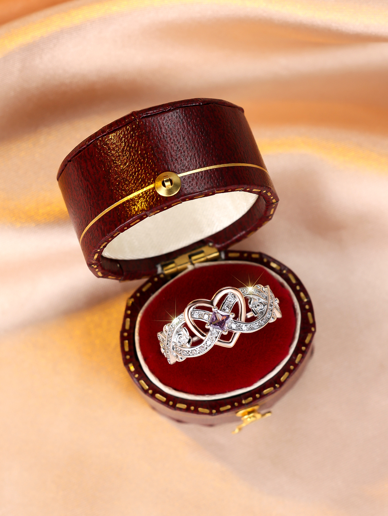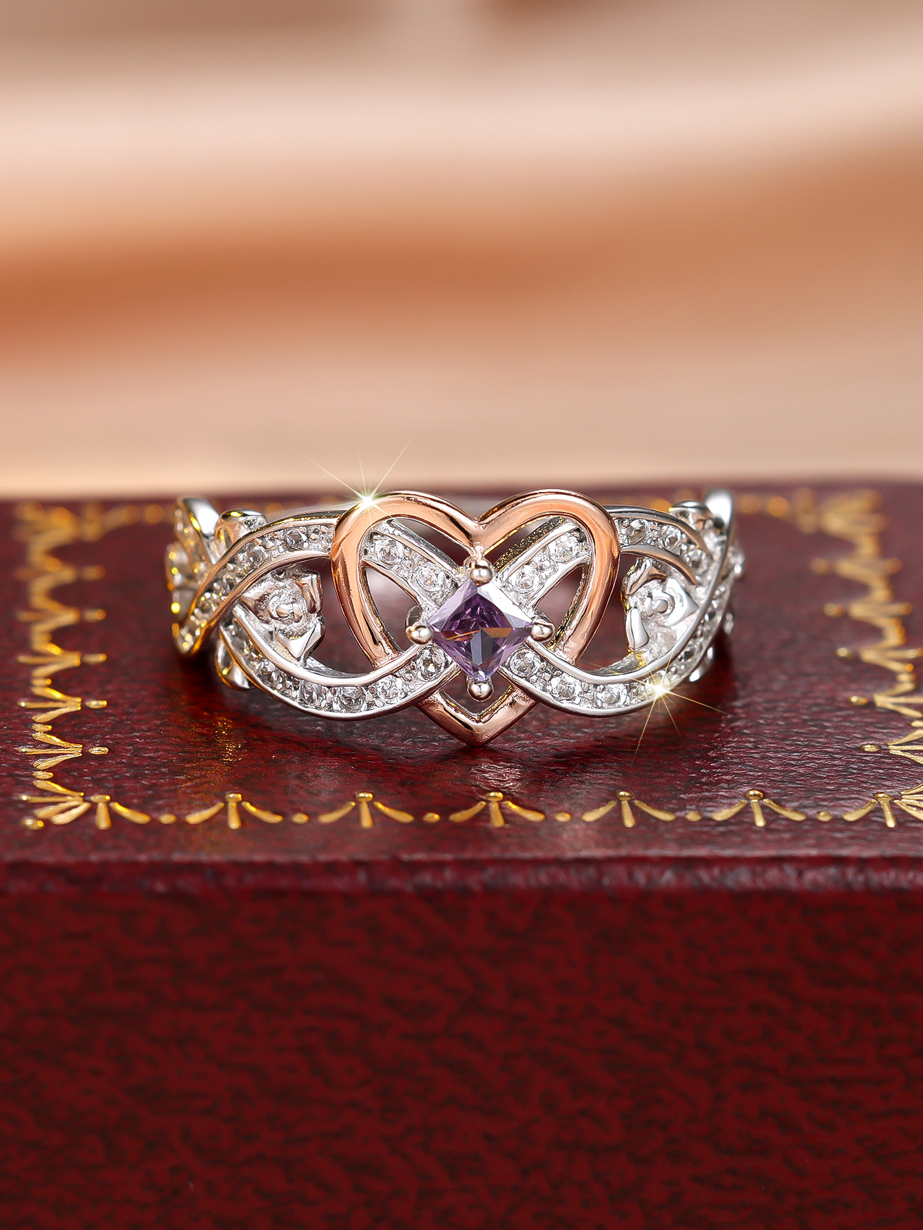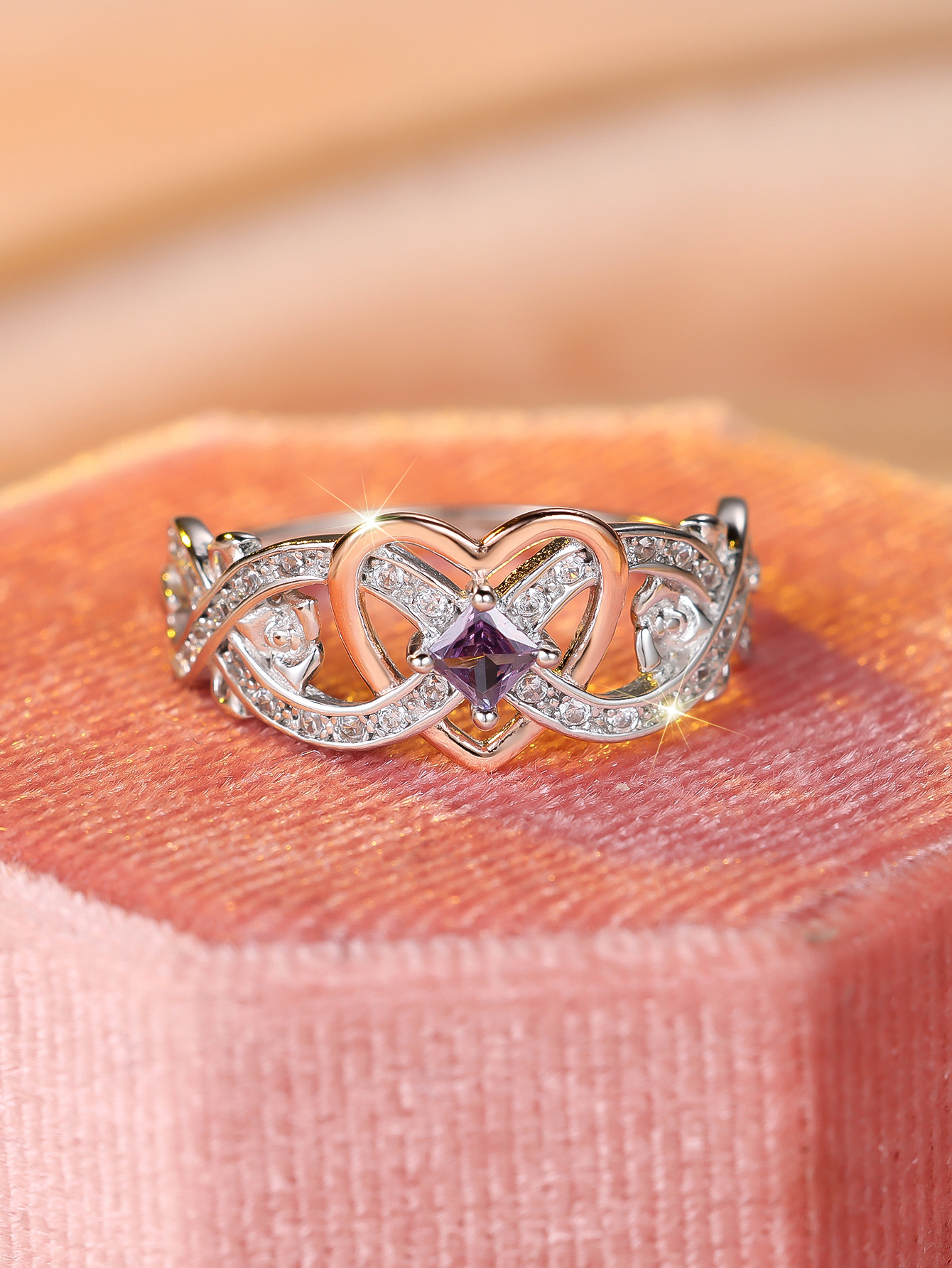 洛迪饰品跨境热卖玫瑰花公主方钻双色心形锆石订婚戒指厂家批发