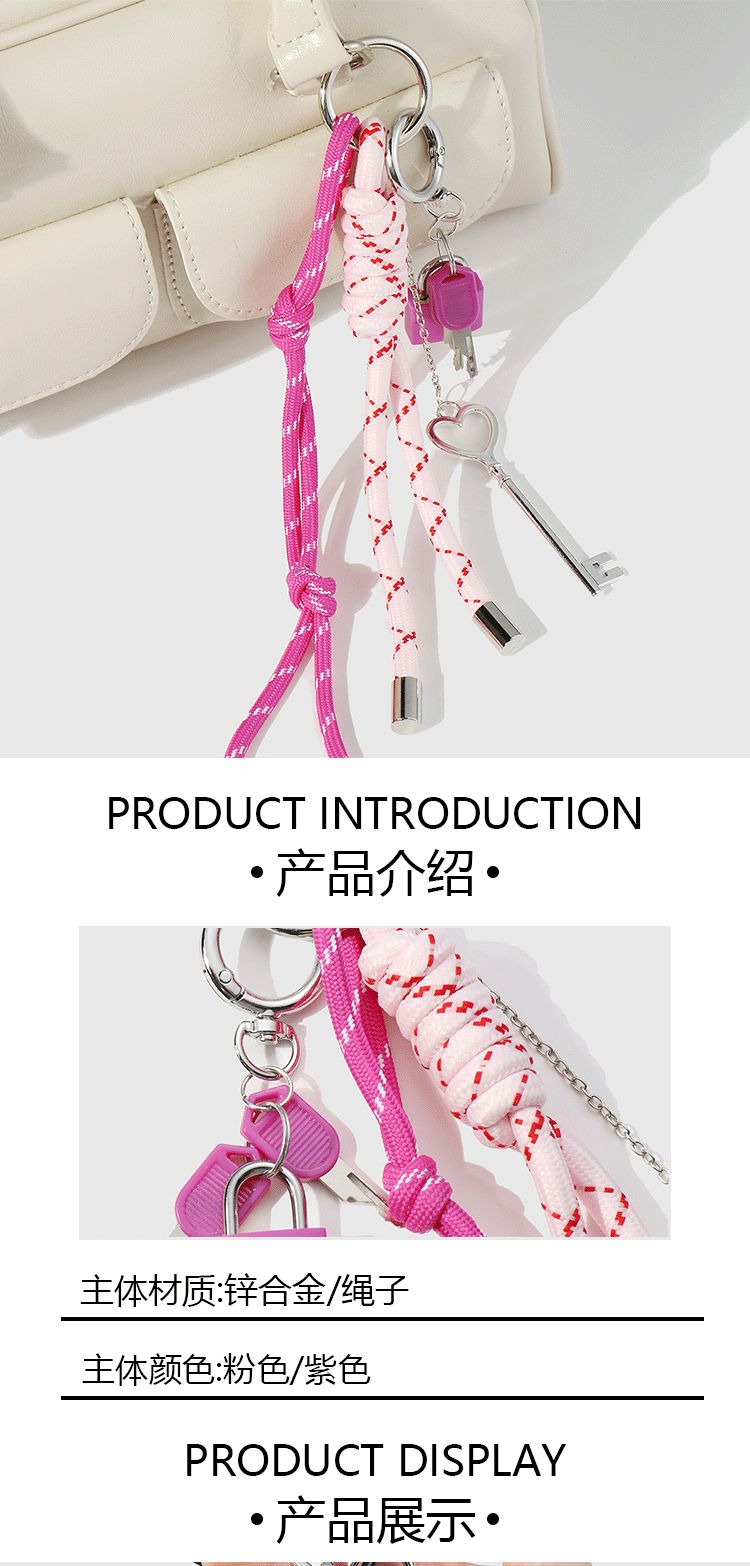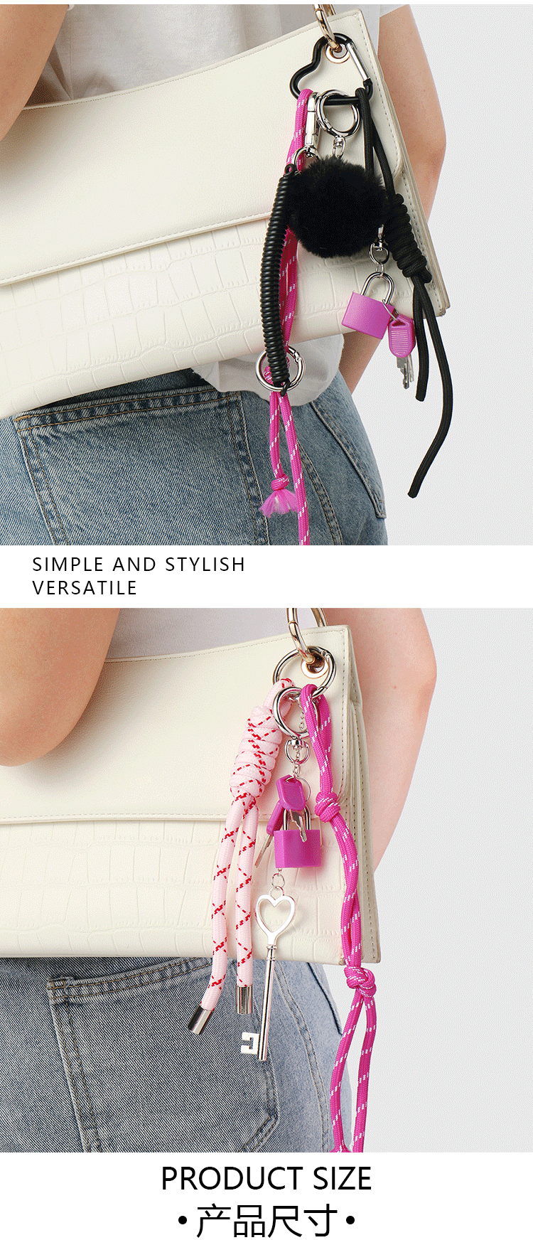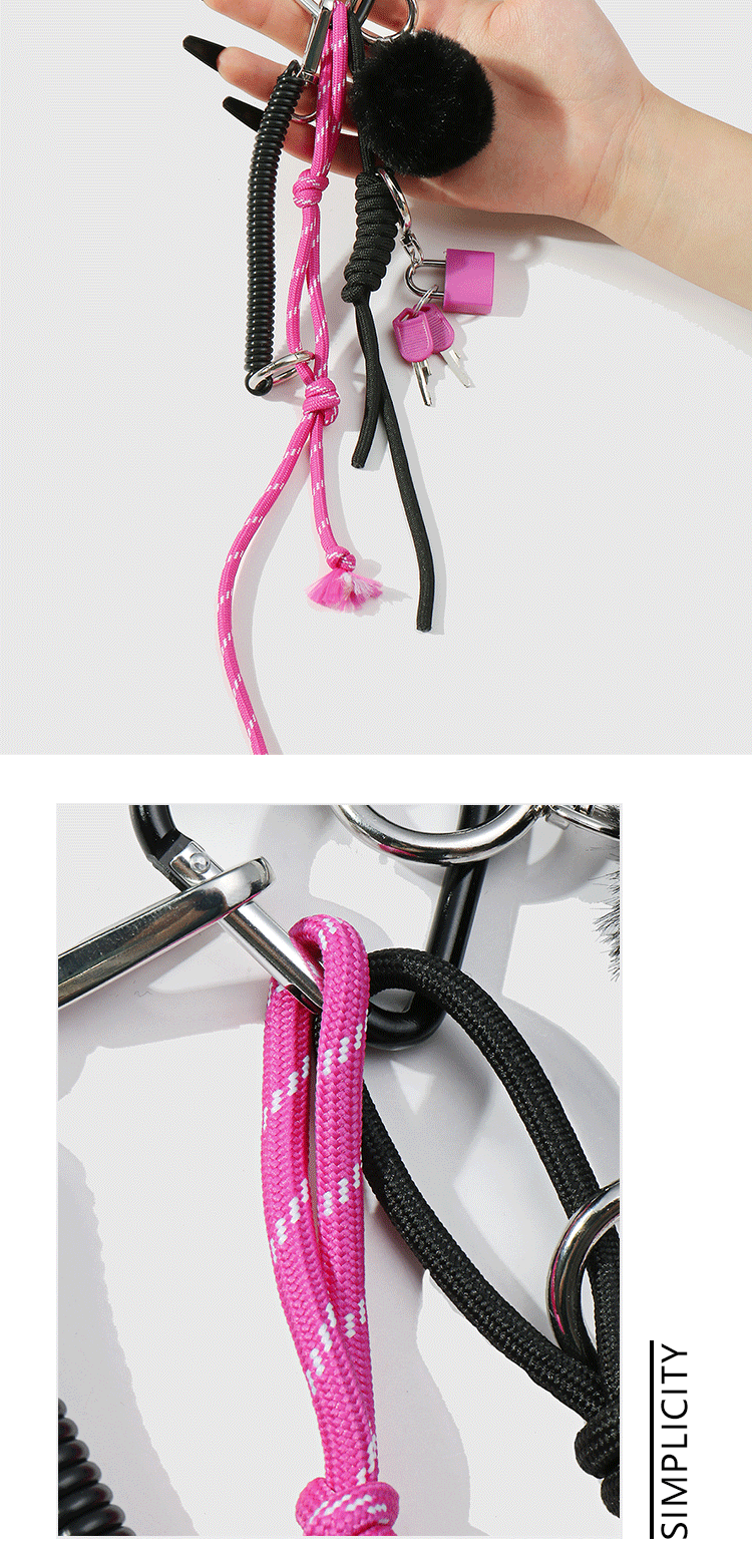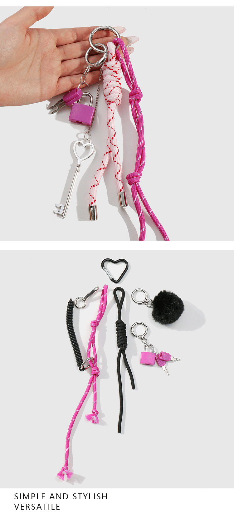ローズレッドキーカラーマッチング調節可能なペンダント1個,黒のぬいぐるみボールローズレッドのカラーマッチングスリングペンダント1個