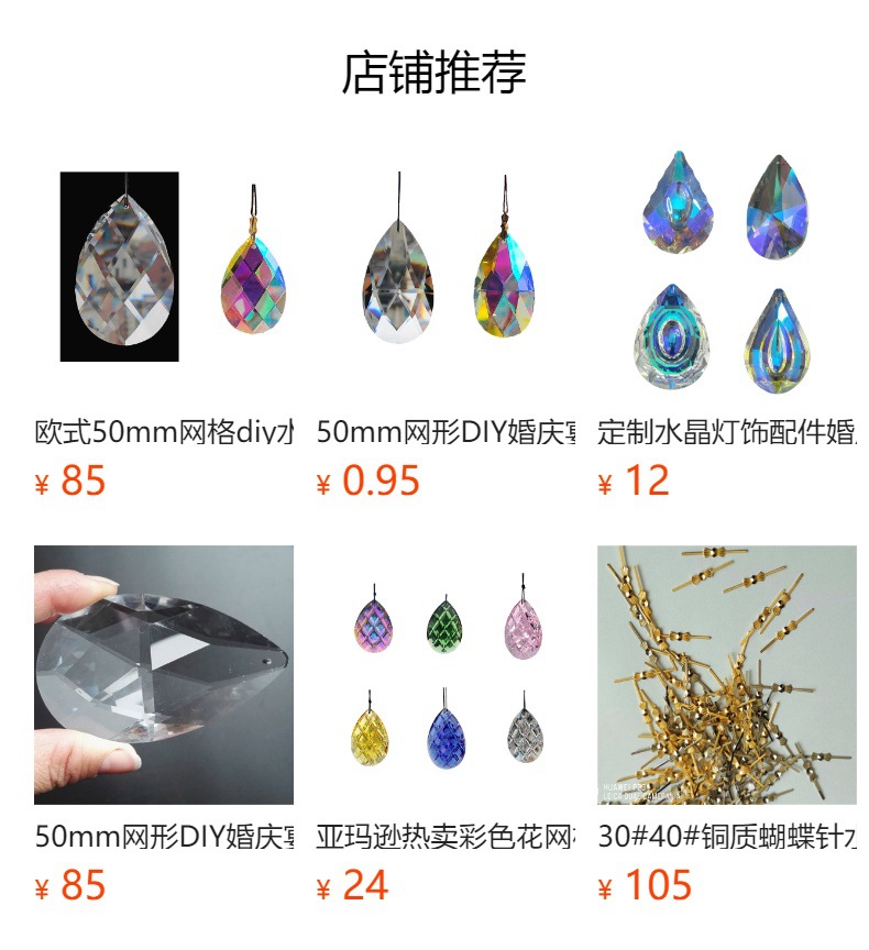 【适用场合】:家居、玄关、灯具、窗帘、酒店酒吧、会所KTV、婚庆影楼、商场店面橱窗、酒店大型工程灯家居装饰珠帘灯;广泛应用于水晶灯,现代灯,蜡烛灯,水晶门帘吊坠,窗帘挂坠;用于珠帘或水晶灯下端吊坠。