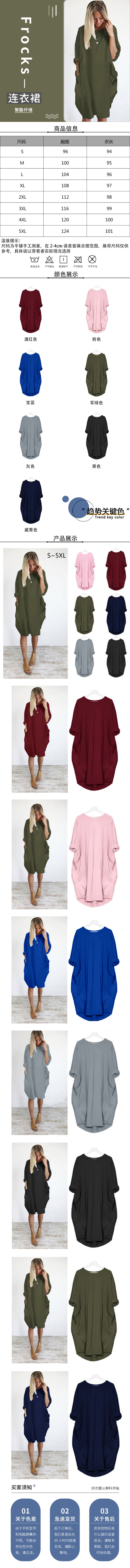 クロスボーダー春秋半袖ワンピース、AliExpress供給、欧米風ファッションカジュアル、大きいサイズ、ミディアム丈、ランタンスカート