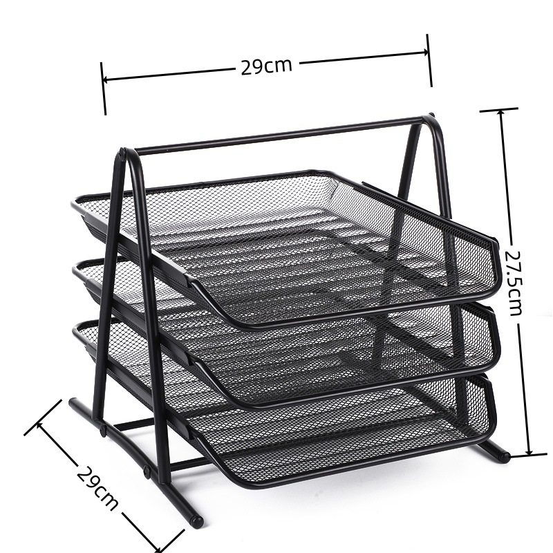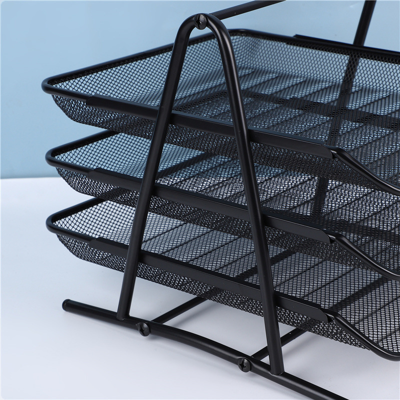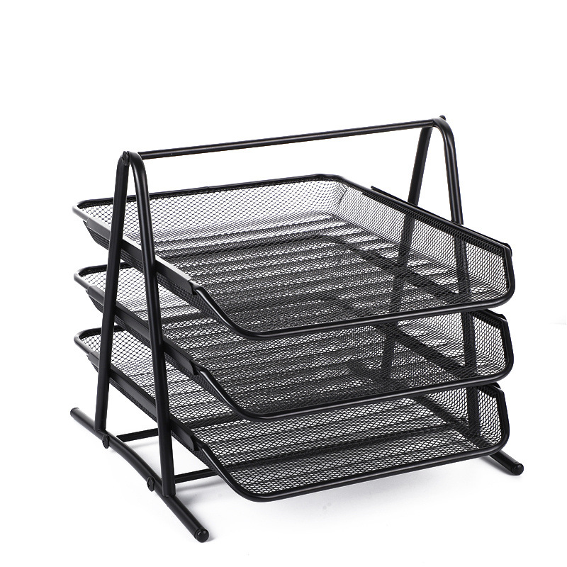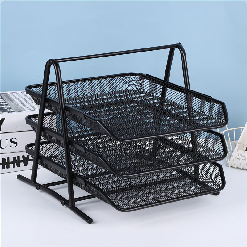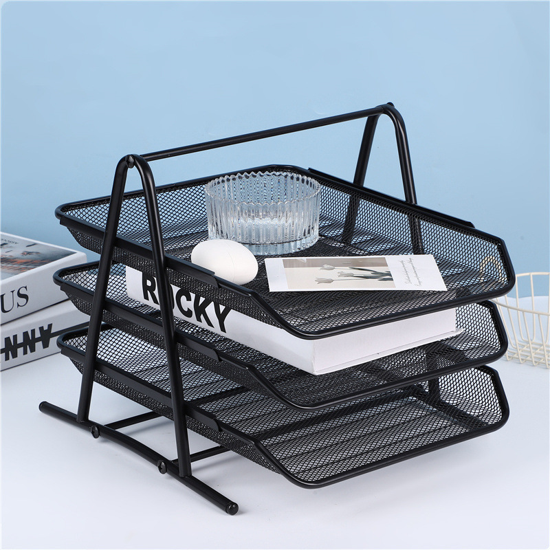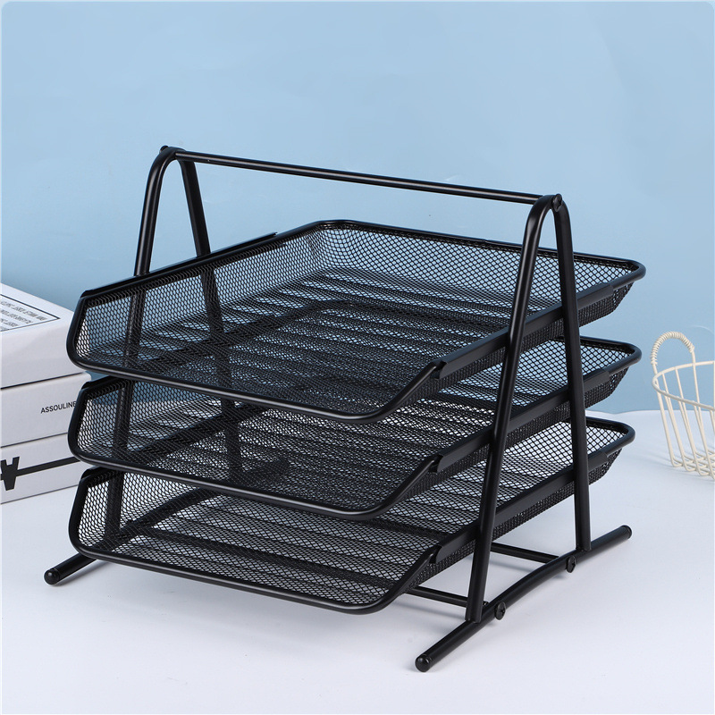 人気の金属鉄網三層ファイルケースのシンプルな事務用品収納ファイル棚卸売り