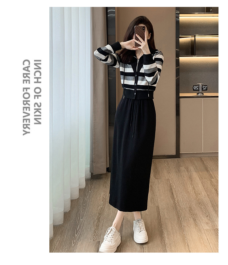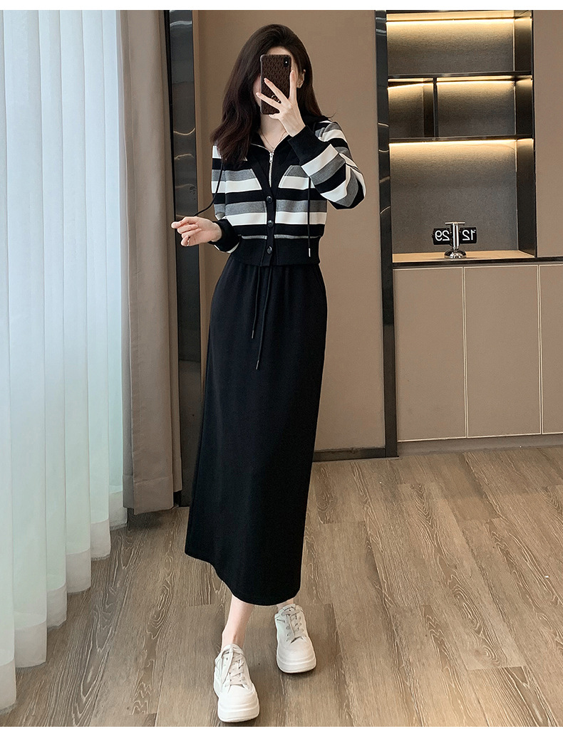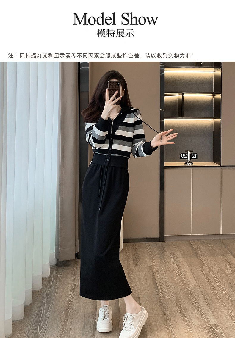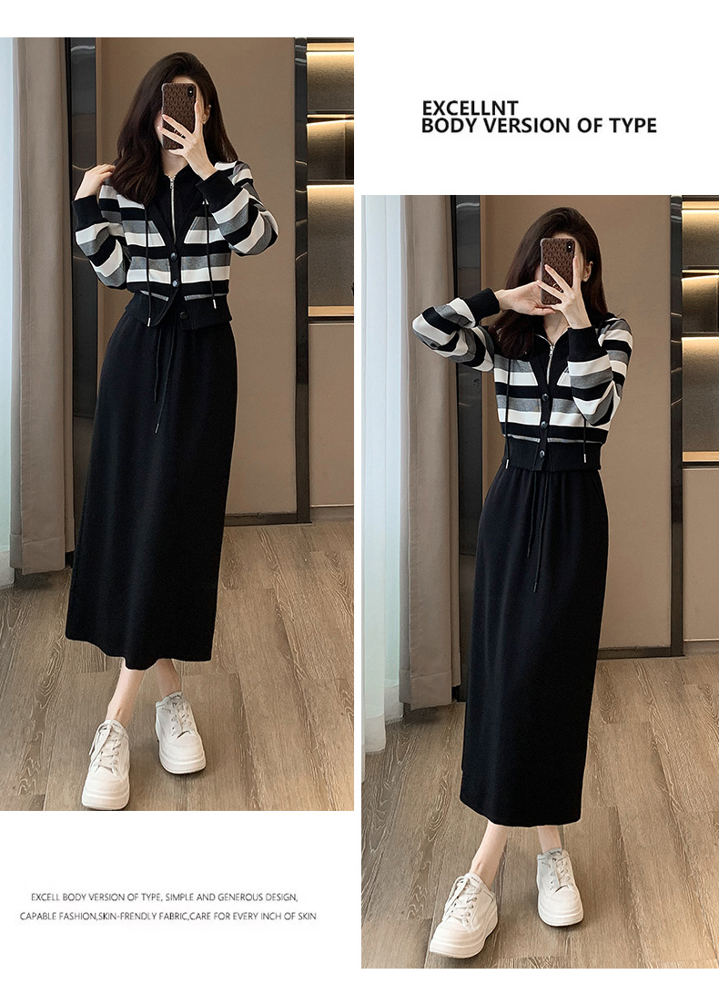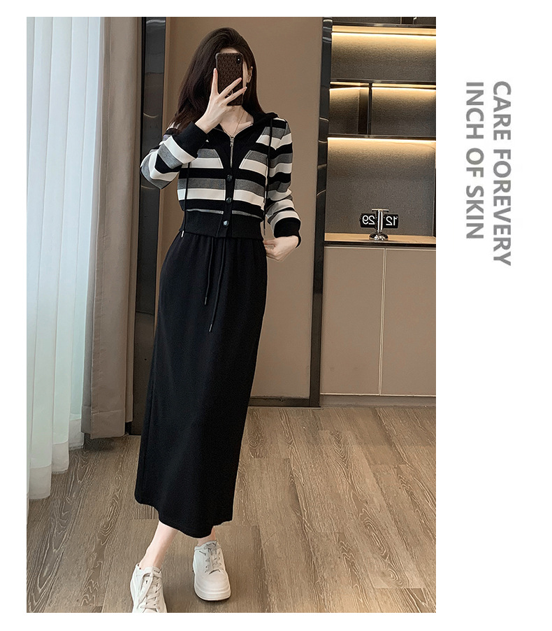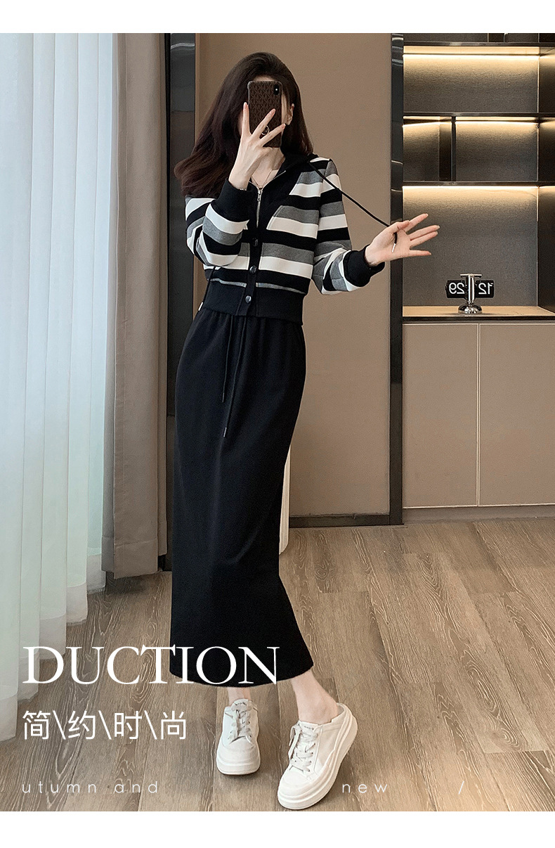 ヨーロッパの春と秋の婦人服、2025年流行の美しいカジュアルなフード付きフェイクツーピースワンピース