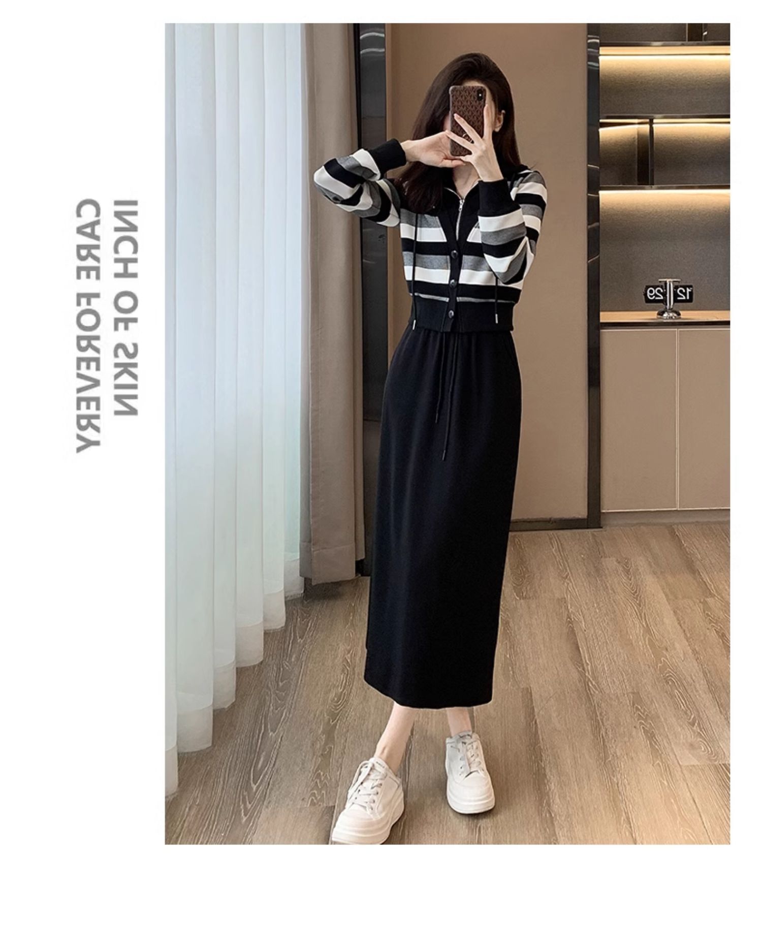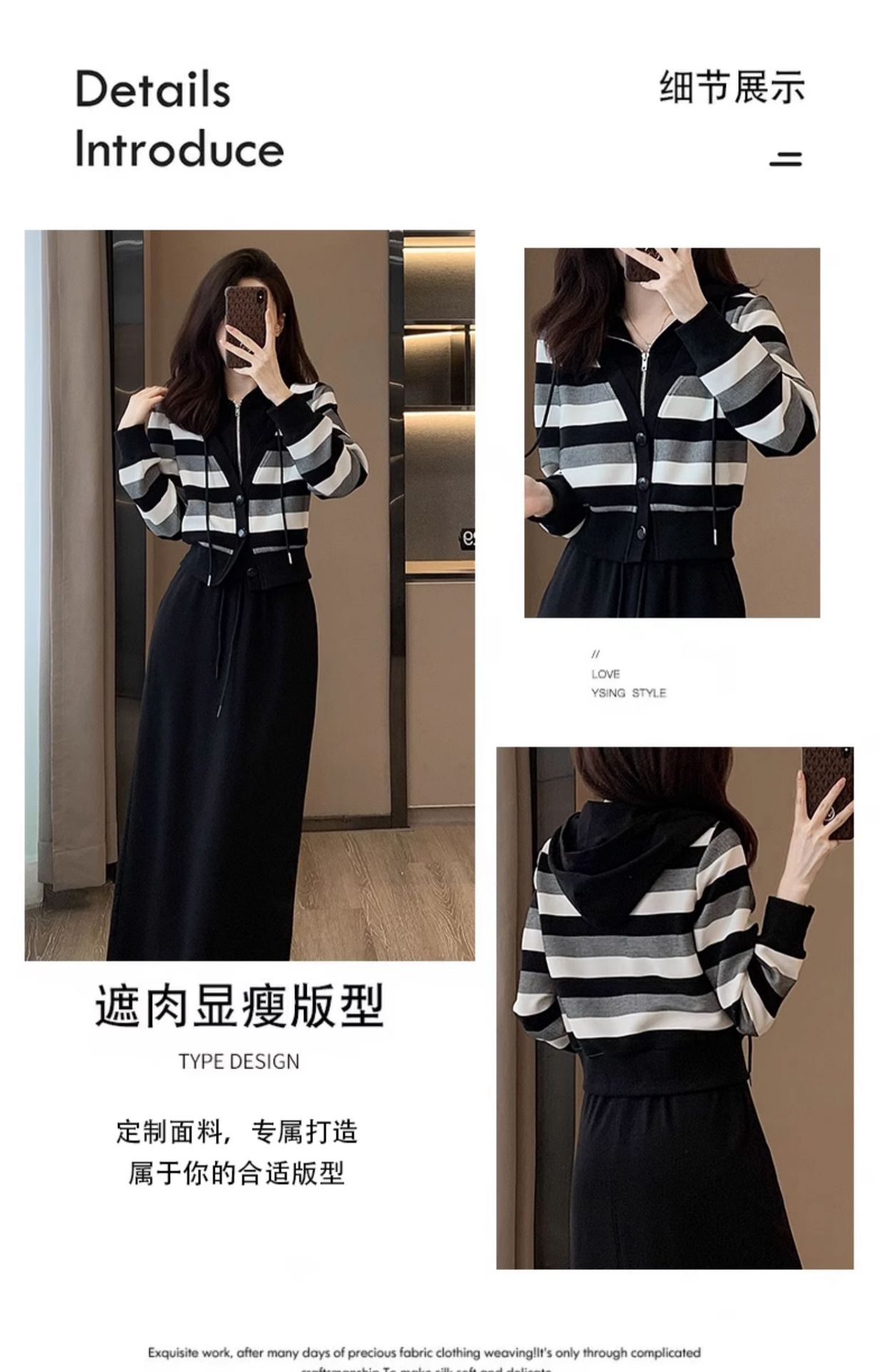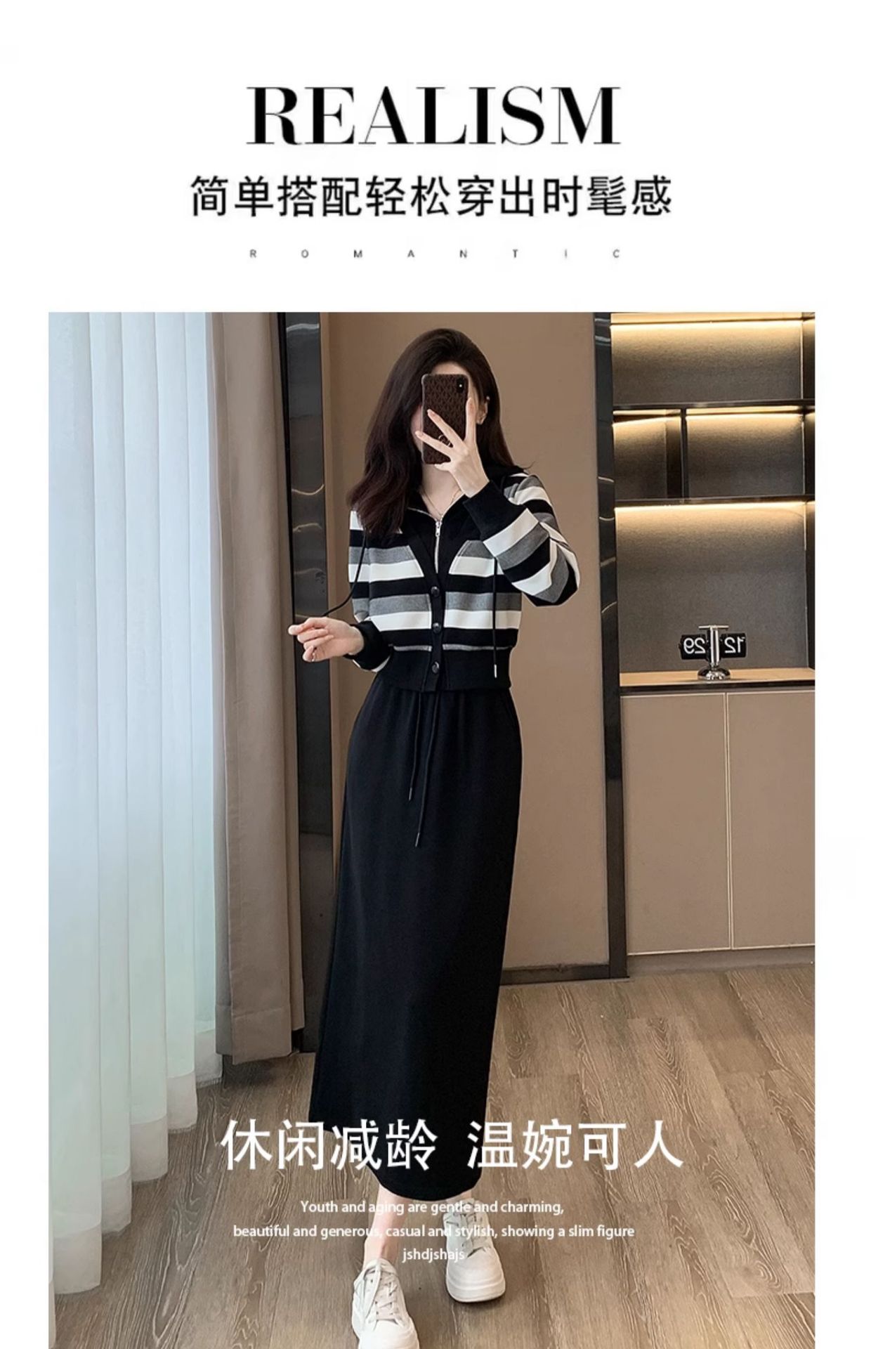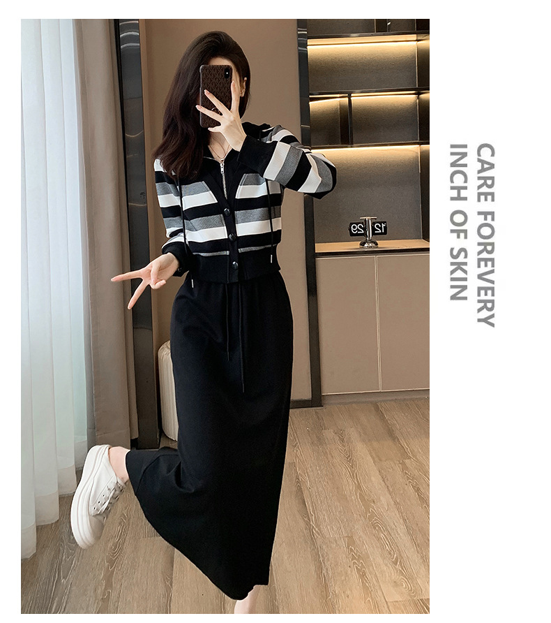 ヨーロッパの春と秋の婦人服、2025年流行の美しいカジュアルなフード付きフェイクツーピースワンピース