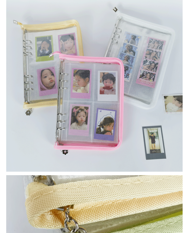 インススタイルエッジジッパー穴ルーズリーフブックシェル 3inch 5inch ポラロイド小さなカードチケットフォトアルバム収納ハンドブック