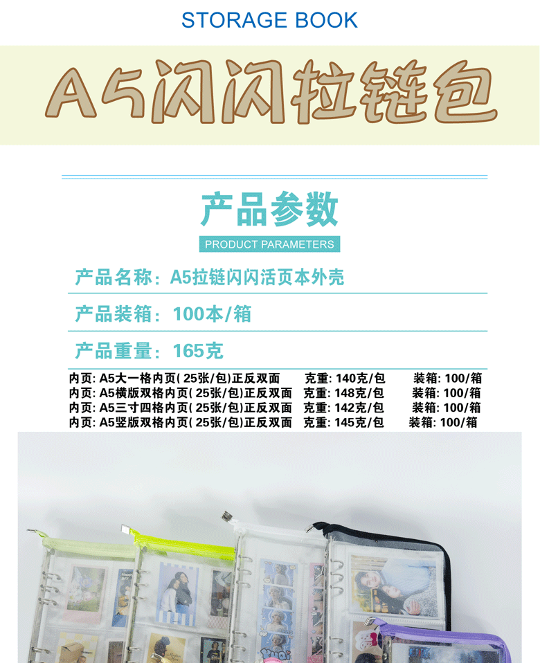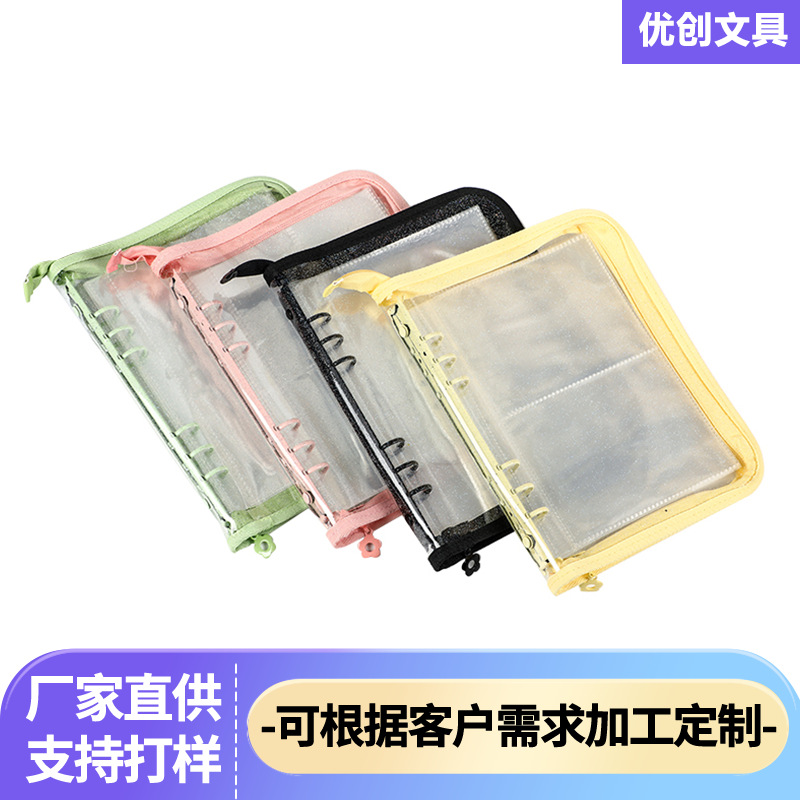 フラッシュパウダーPVCソフトシェルジッパー手帳A5四宮格追星アルバムキラキラ6穴カード冊アクセサリー収納帳