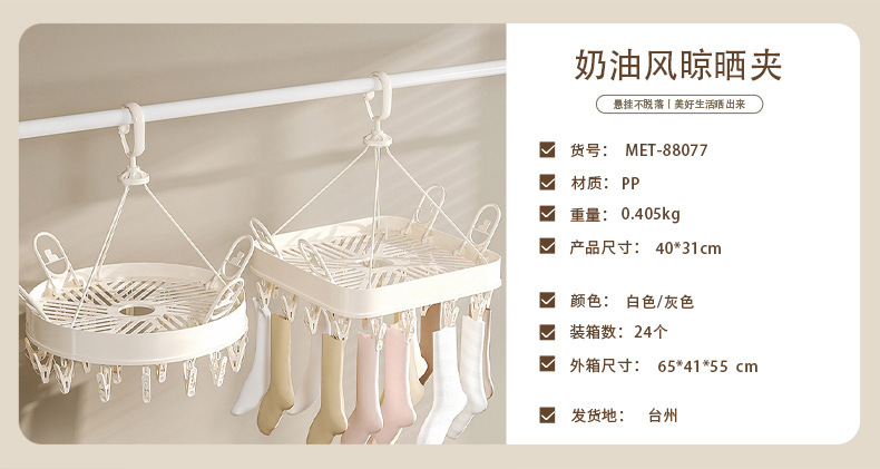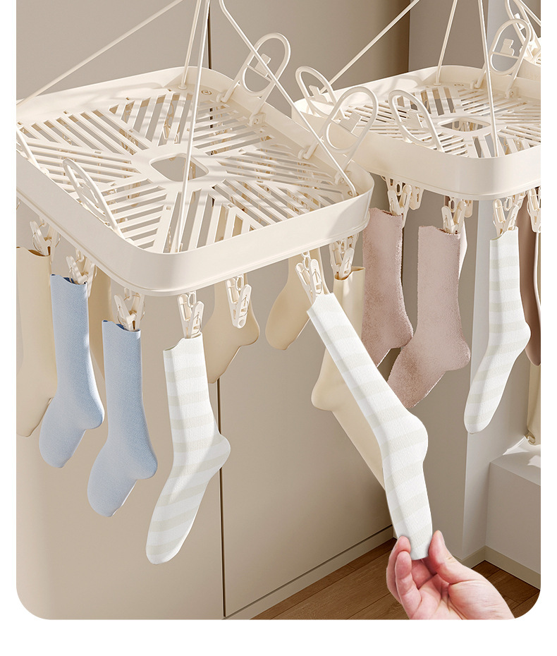 多クリッププラスチックハンガー防風靴下ベランダハンガー多機能26クリップ干しハンガー卸売り