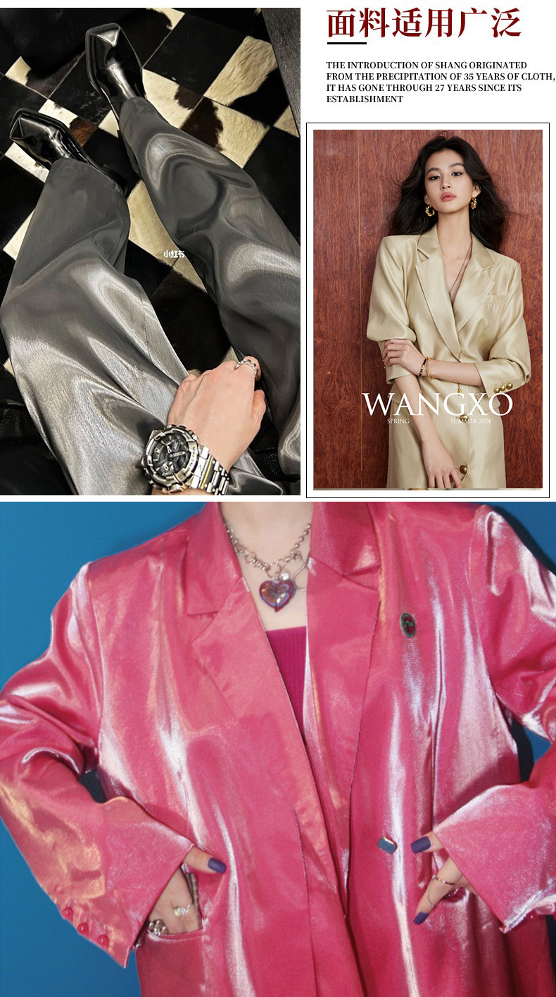 超明るい液体反射水晶シルクサテン生地シルク滑りドレスズボンダウンジャケットスーツ風衣デザイナー生地