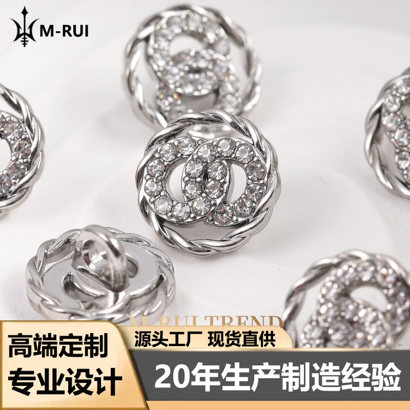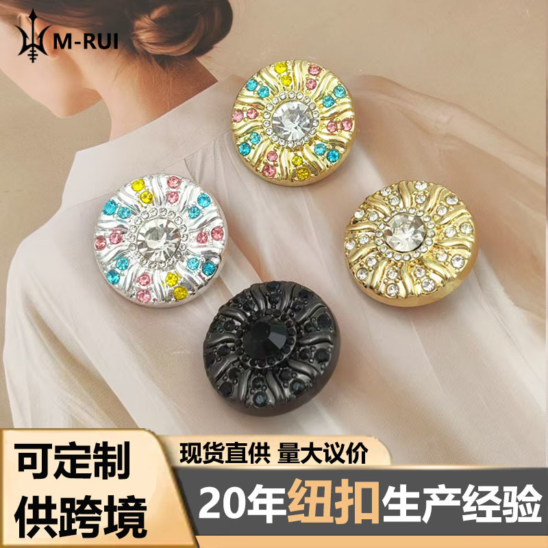 高级感小香风彩钻轻奢圆形金属手缝纽扣大衣毛衣针织衫连衣裙扣子