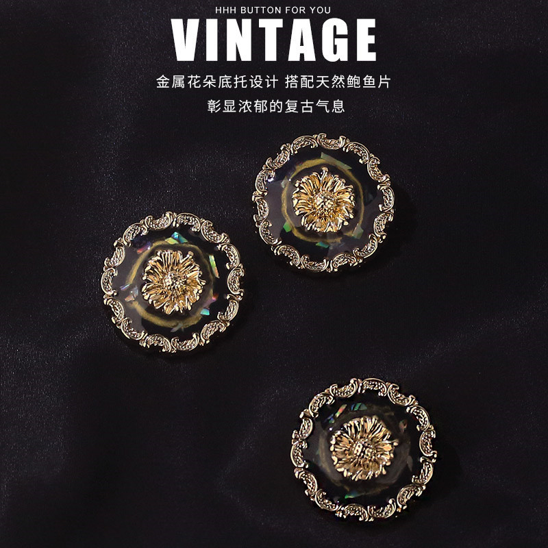 HHH金属ボタンボタンの付属品の高級スーツのボタンの花のレトロな油の金属の天然のアワビの貝