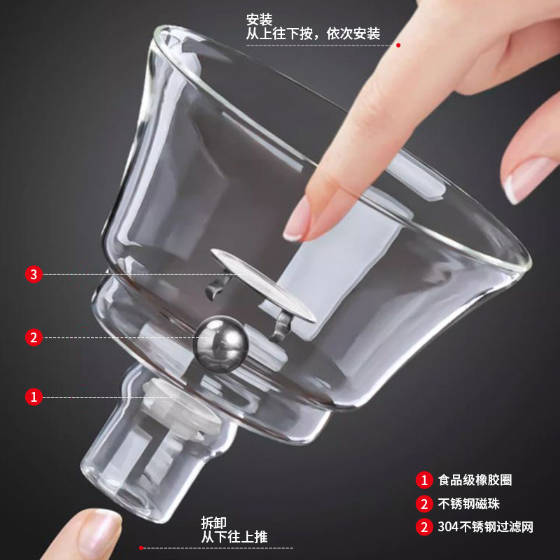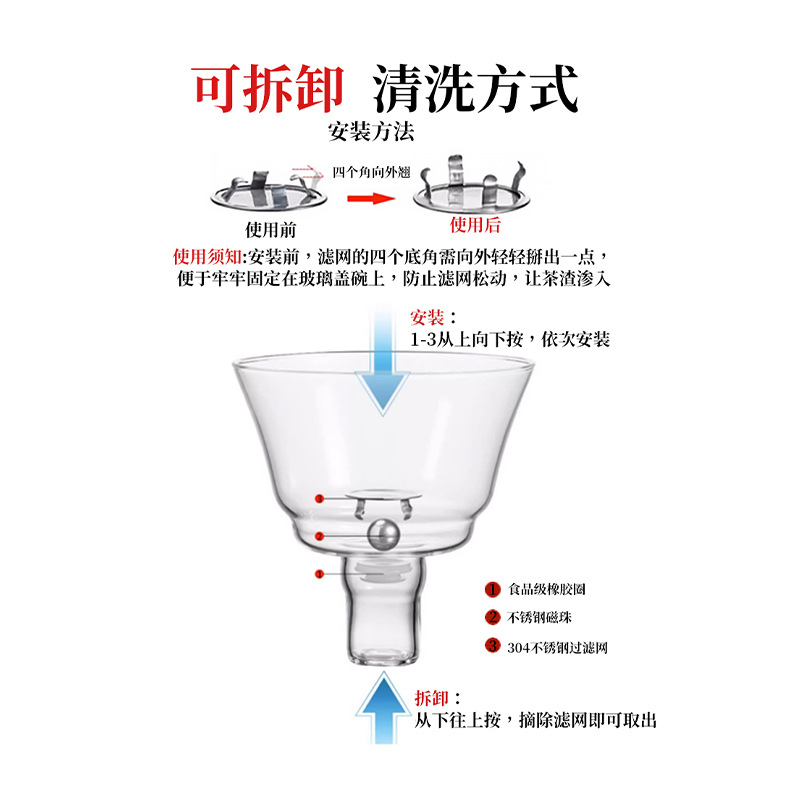 ガラス磁気式茶器茶道用アクセサリー磁気ビーズステンレスフィルターガラス蓋ボウルゴム栓ゴムリング金蓋