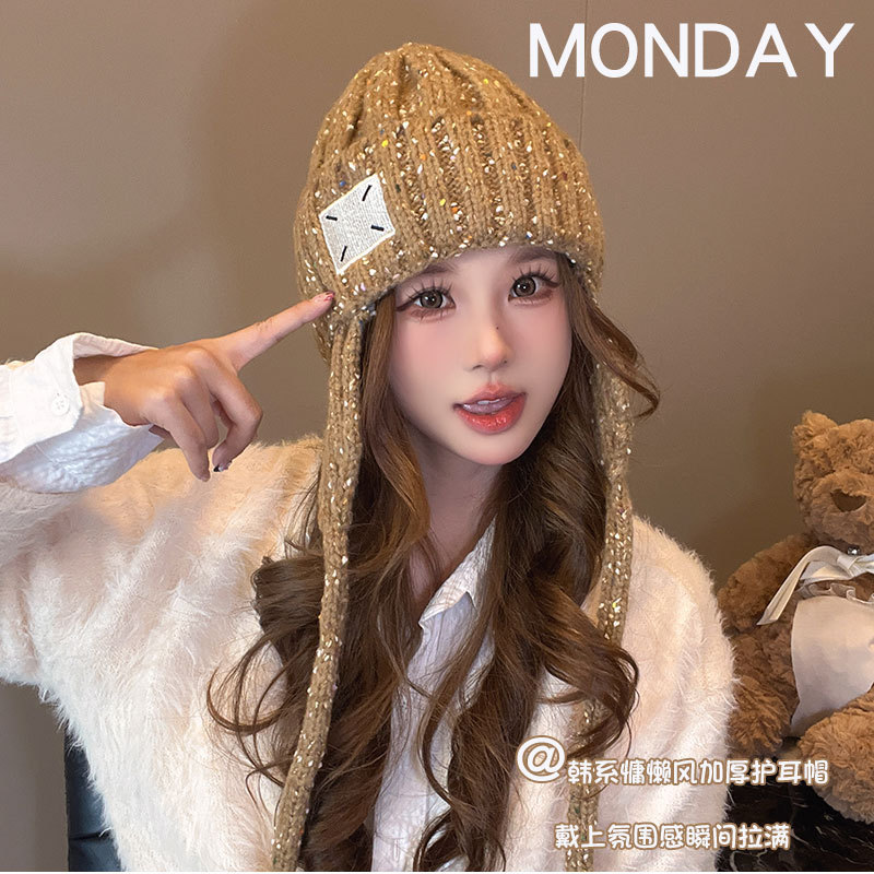 2024新型混色流蘇お下げカバーの毛糸帽の子供は冬に保温します。