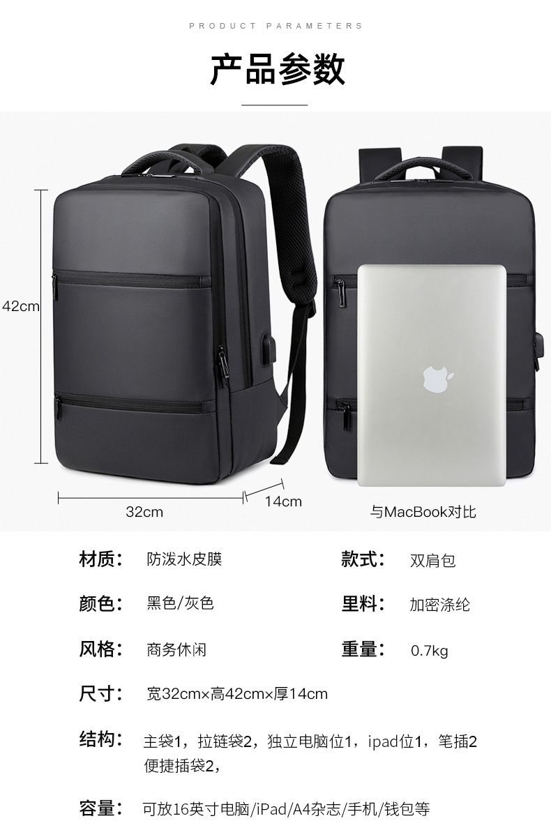 クロスボーダービジネス通勤リュックサック男性カジュアル純色シンプル旅行パソコンバッグ大容量学生カバン