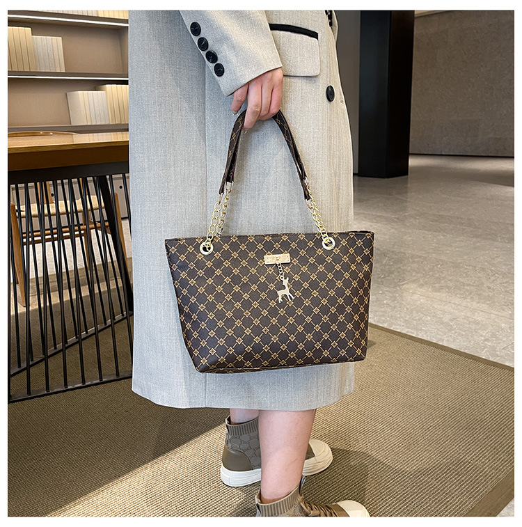 2025新型レトロファッションプリントファッションチェーン片肩脇下バッグ手提げ大容量トートバッグ通勤バッグ