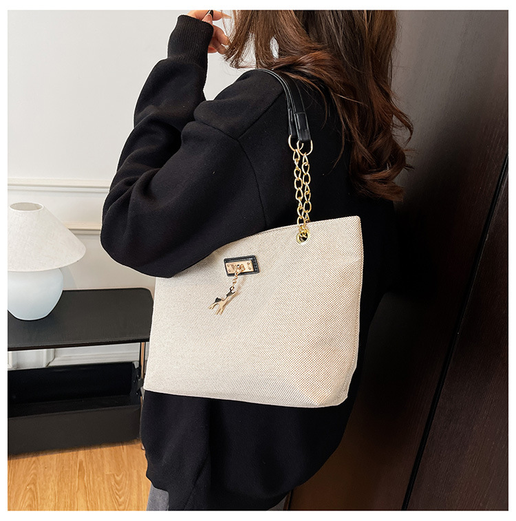 纯色链条单肩包包女大容量跨境上班通勤购物2025新款手提托特包