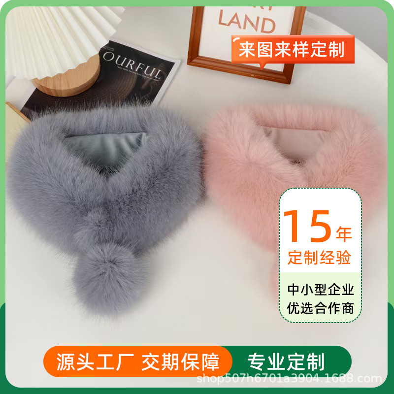 イミテーションラビットファー学生ファッションネックスカーフ、無地、多用途、秋冬韓国版、細くて厚みのある暖かいクロスオーバーぬいぐるみスカーフ