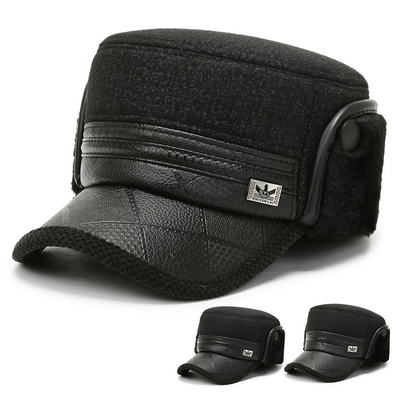 中高年帽子の男性毛は平頂帽保温帽冬の父のおじいさんの耳にアヒルの舌の綿の帽子を厚くします。
