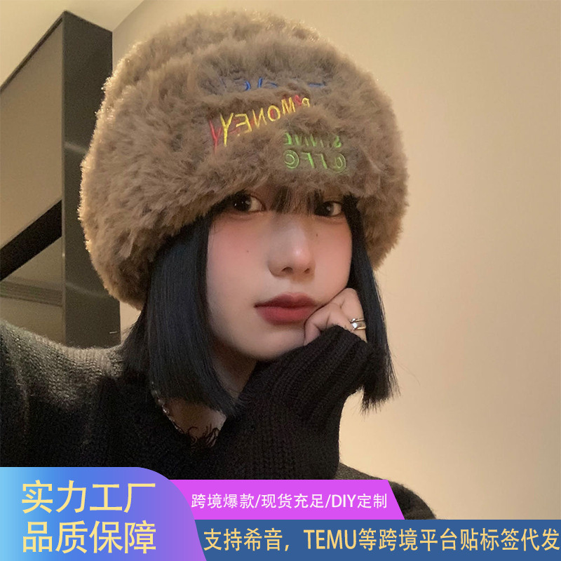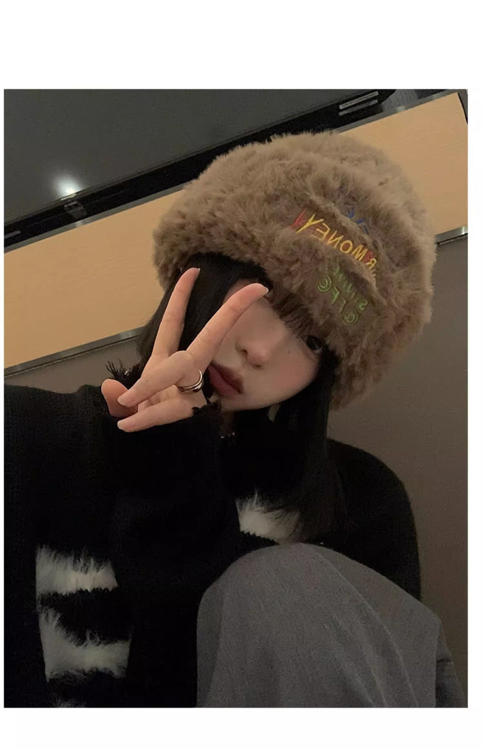 秋冬の女性用の毛皮のようなニット帽、大きな頭囲、厚くて暖かいウールの帽子、韓国風の顔が見える小さな帽子、トレンディです。