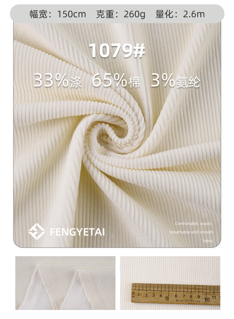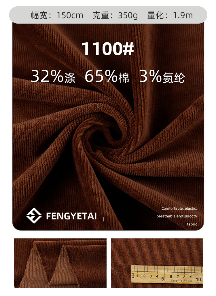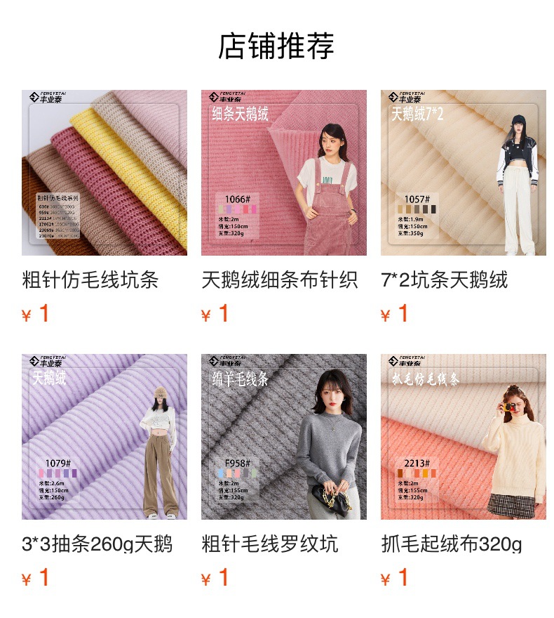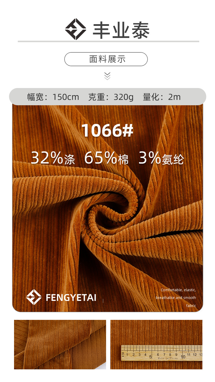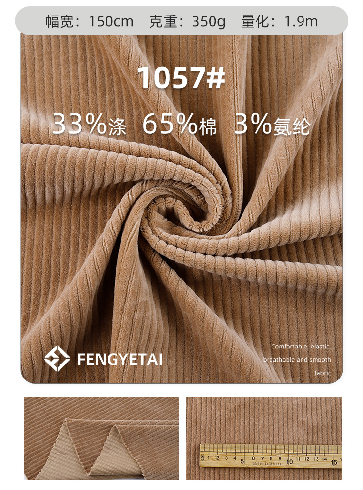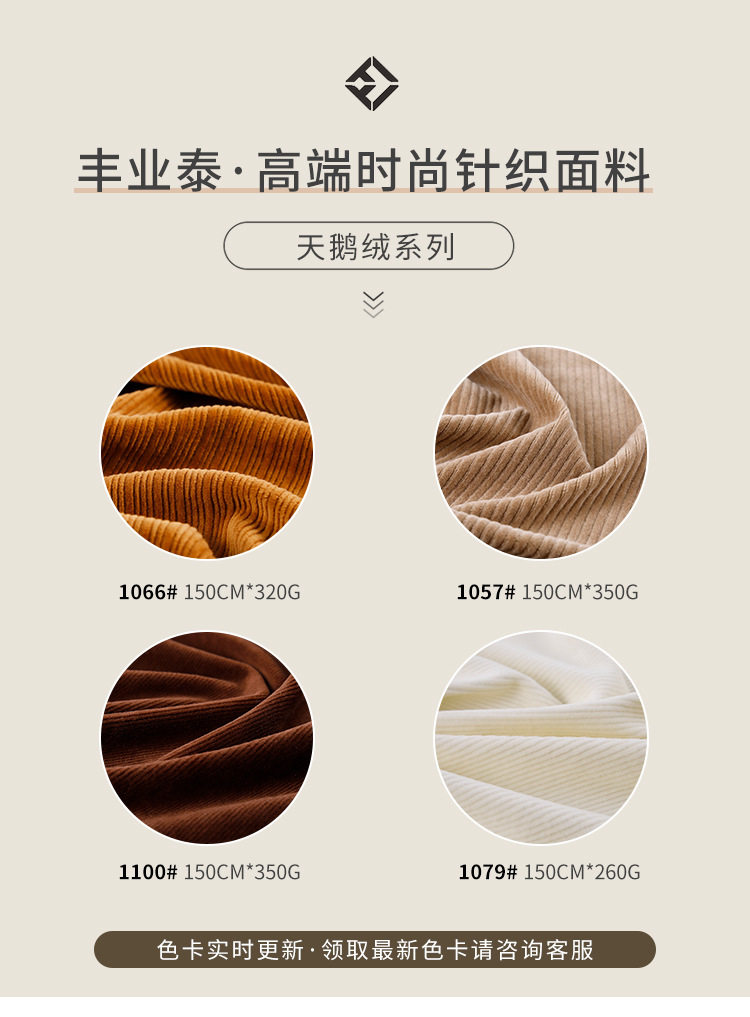 秋冬用グースダウン風320gマット中弾性コーデュロイ保温スーツTCポリエステル綿混紡グースダウン風ニット生地