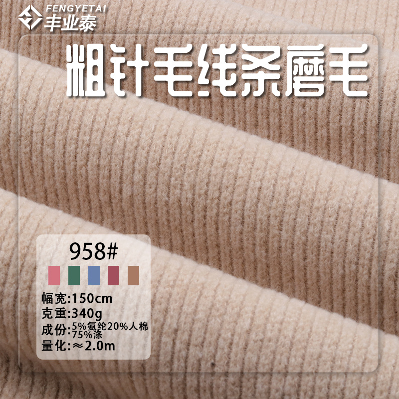 秋冬粗针毛线条340g人棉涤肌理感厚实磨毛坑条保暖毛衣针织面料