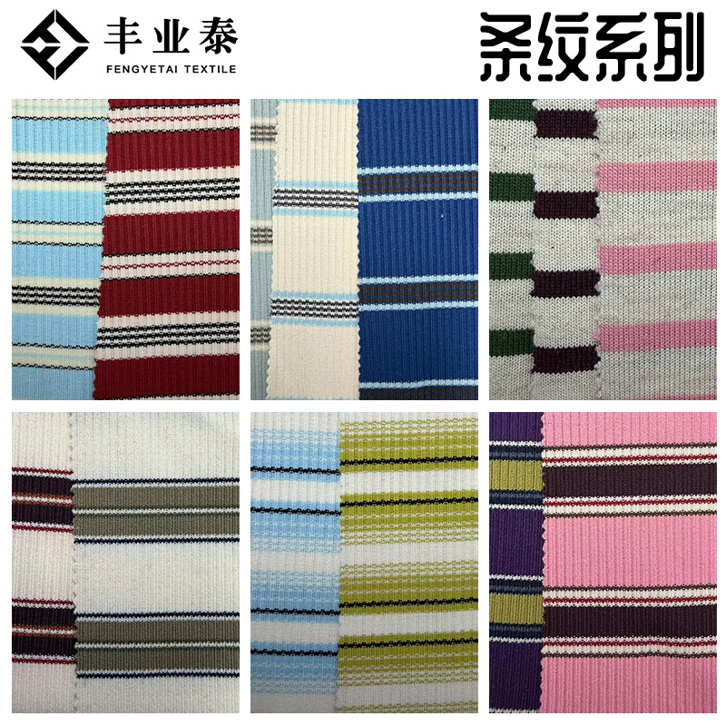 新款针织间条横彩条180g-250g棉双面混纺色织条弹力条纹面料