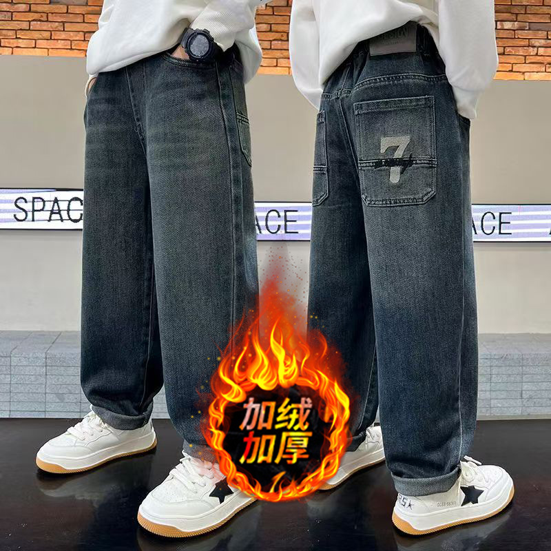 男の子パンツ子供服2025新作ゆったり中大型子供ベルベットジーンズ秋冬男の子春秋ズボン