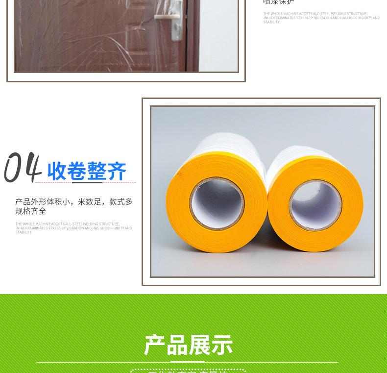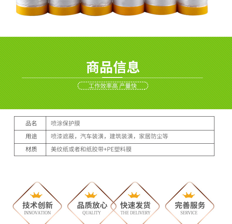 装飾マスキング、家具や寮の防塵、車のスプレー塗装など。
