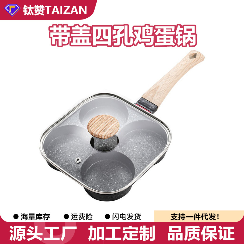 厳選された新作麦飯石四穴卵焼き鍋、家庭用ノンスティック卵餃子フライパン、携帯用キッチンフライパン、朝食鍋