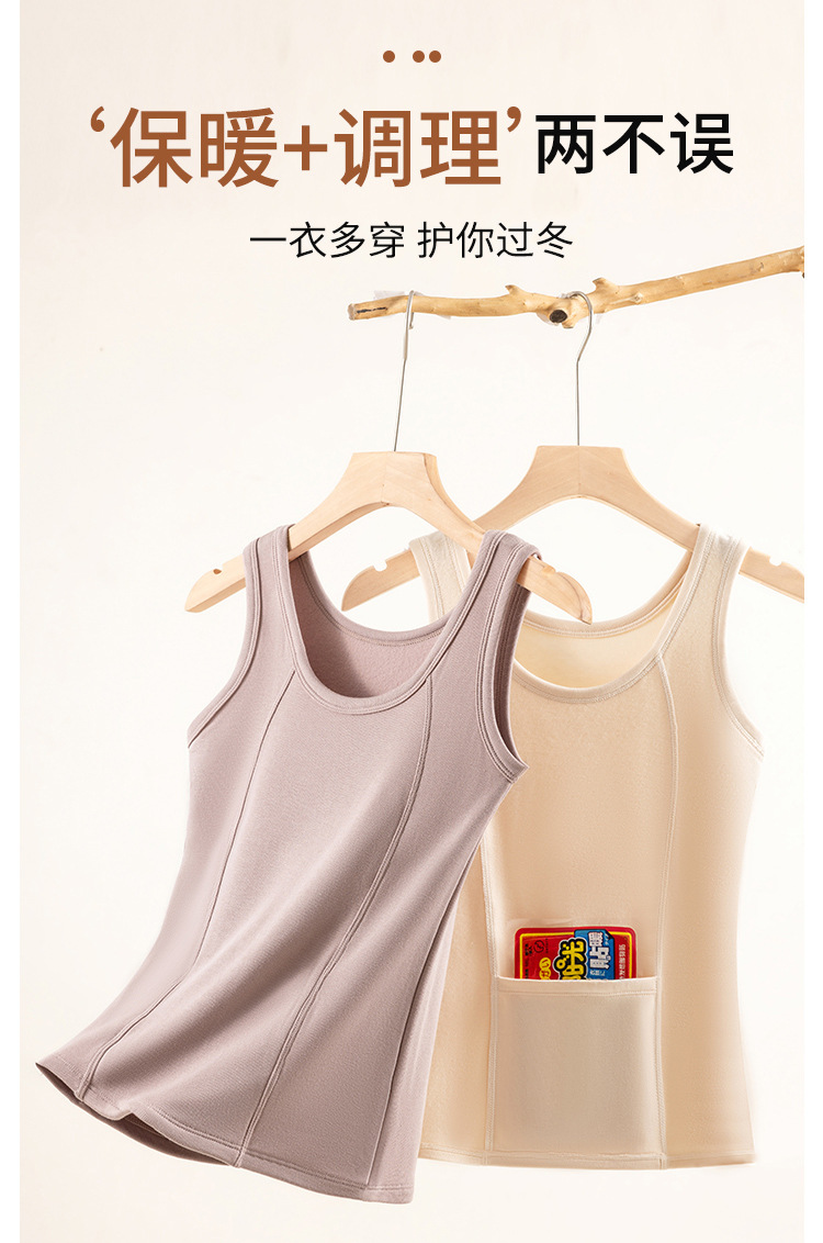 保温下着の女性は、冬の大きなサイズの袖のない上着を厚くして、ポケット付きの宮の発熱とベルベットの保温ベストを持っています