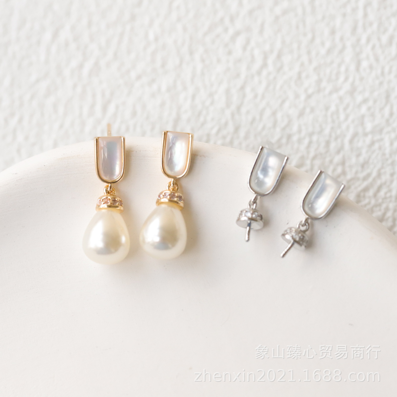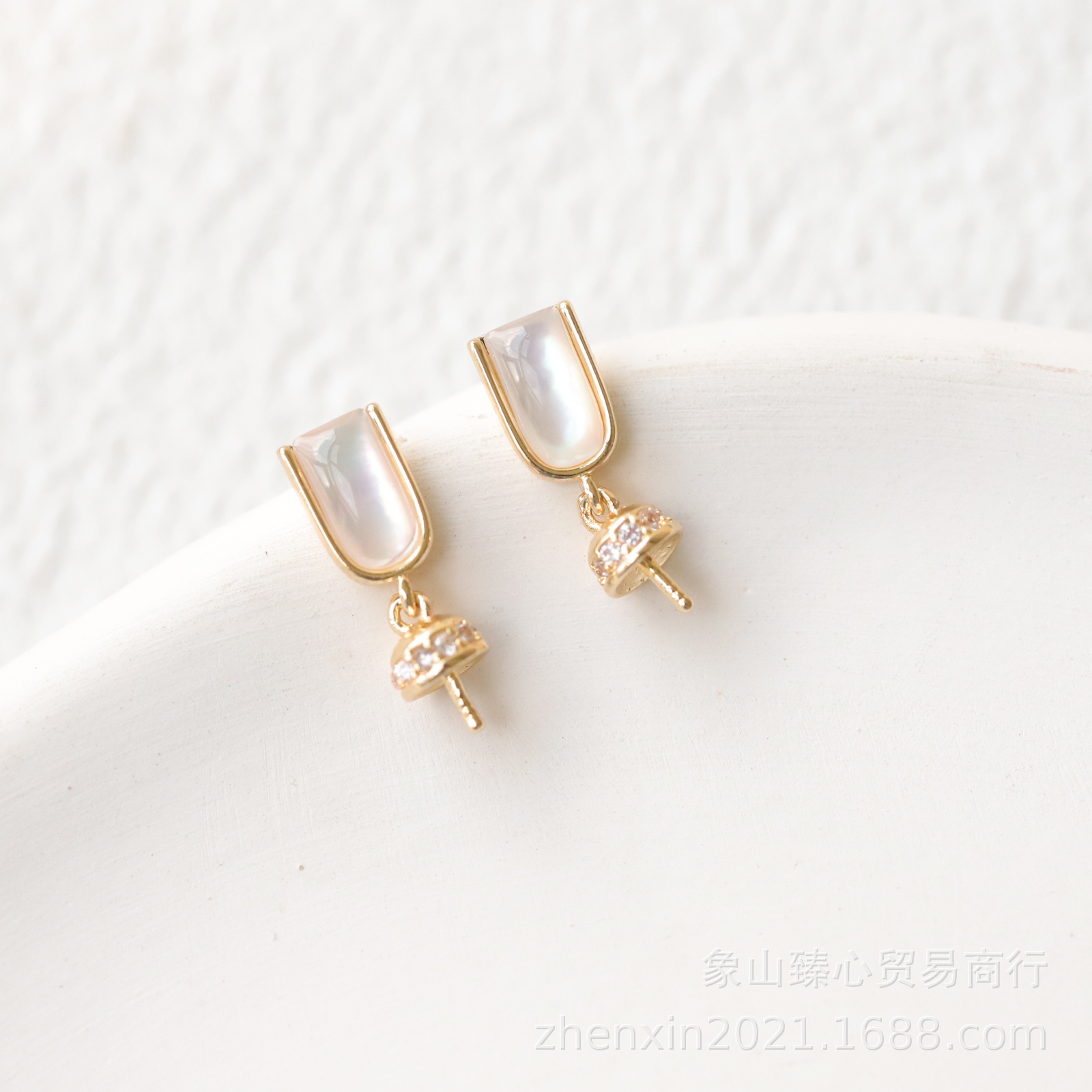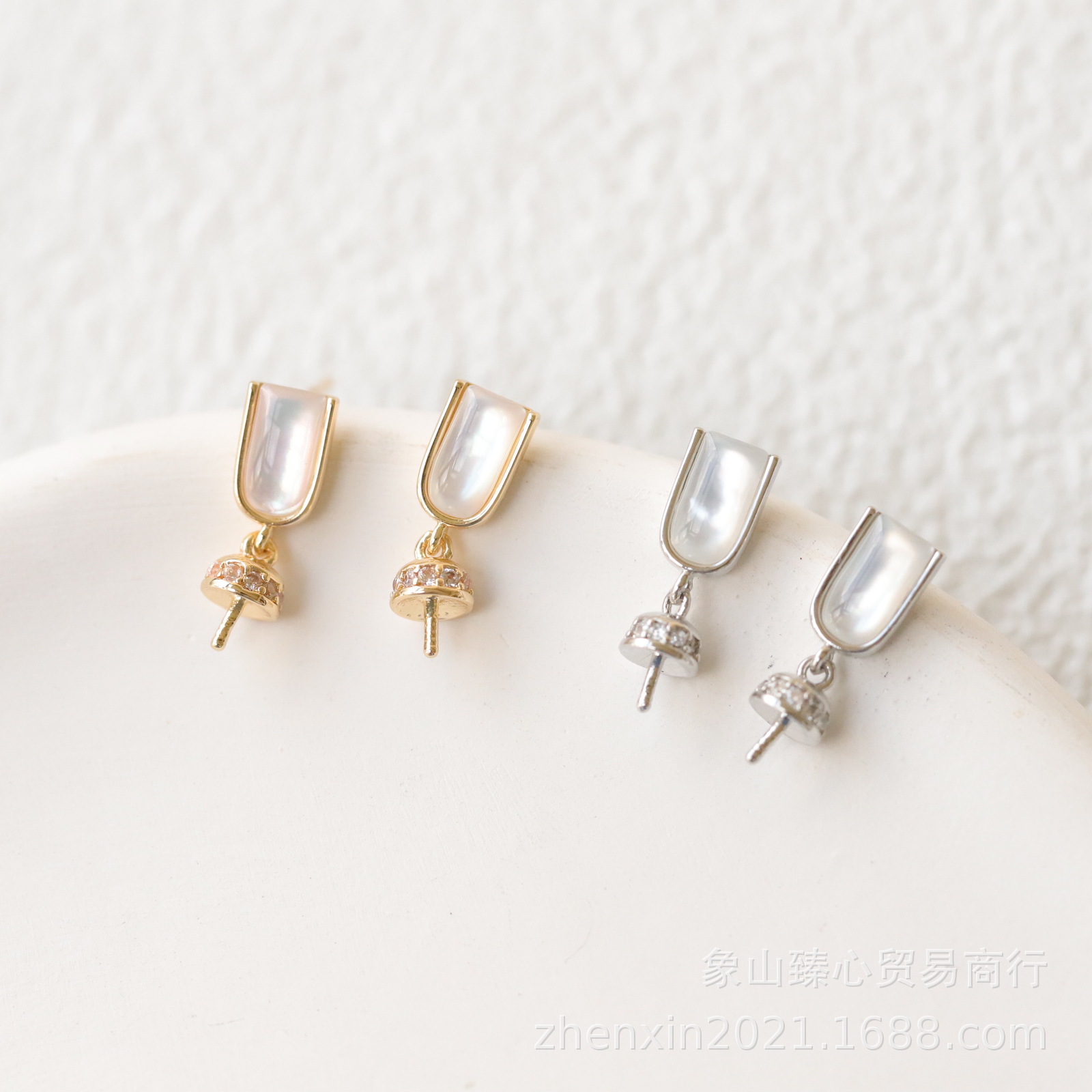 保色铜镀真金+人造锆石+白色贝母+925银耳针
