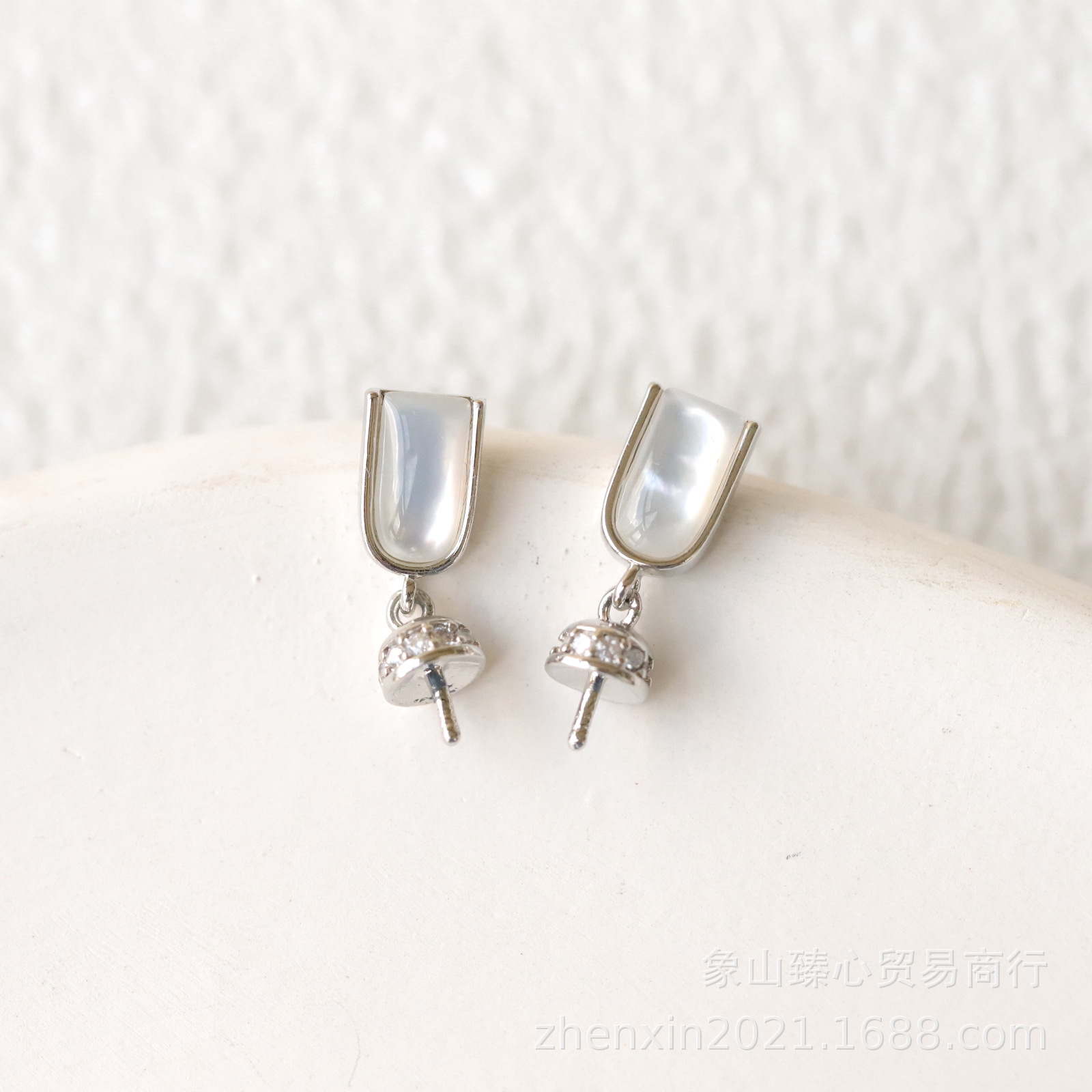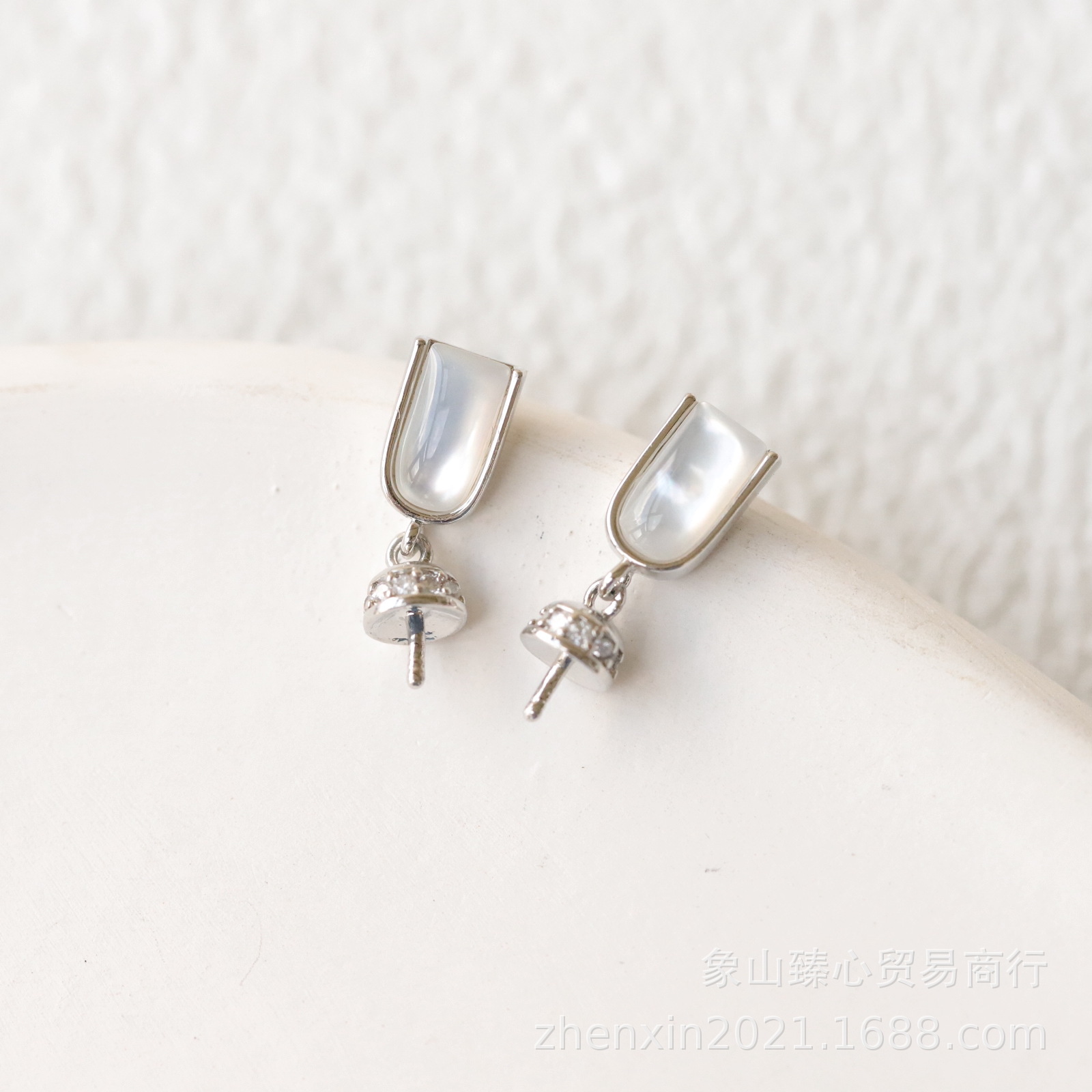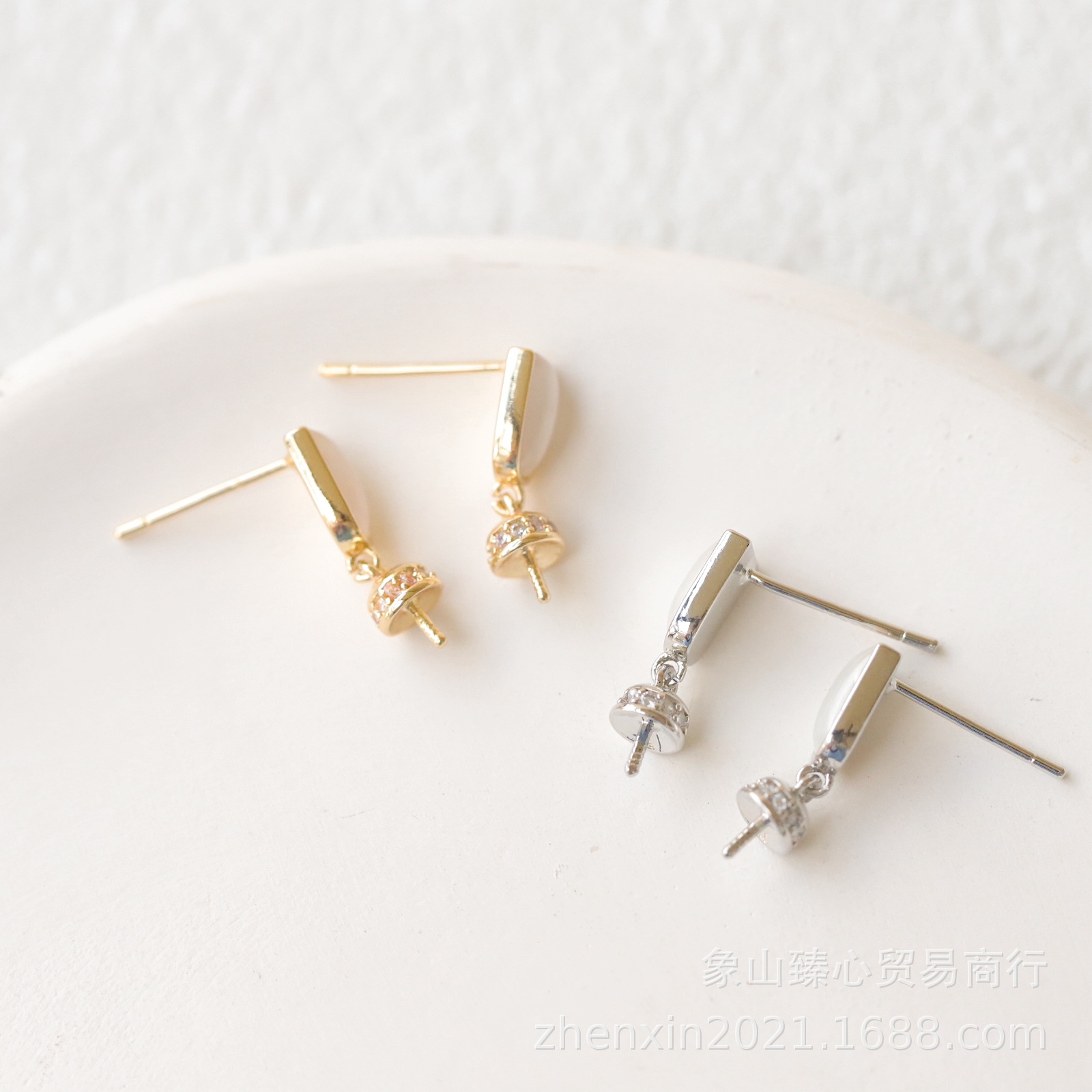 保色铜镀真金+人造锆石+白色贝母+925银耳针